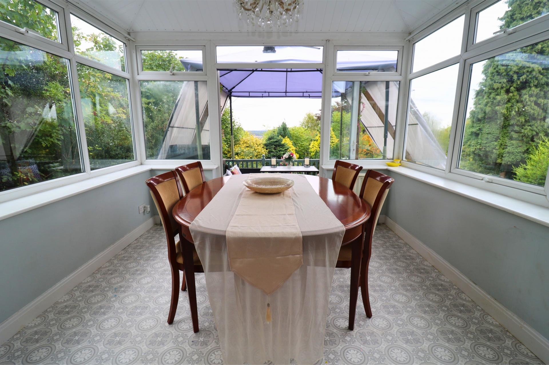 - Conservatory which leads to the feature balcony with splendid views over the large rear garden