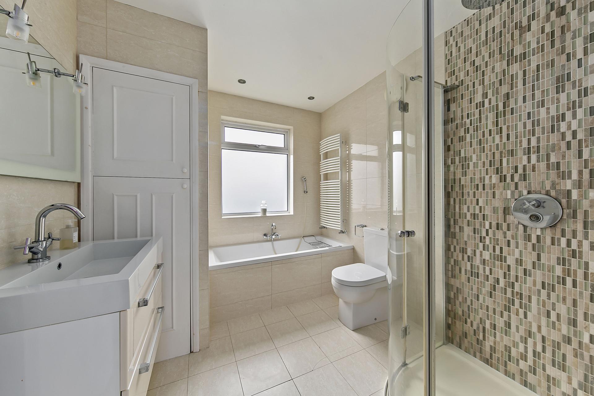 Upstairs, the first floor landing has a side window. This floor opens up to three bedrooms (two doubles and a good single) supported by a modern fitted four-piece family bathroom with separate shower. From the landing a balustraded staircase continues naturally up to the second floor, passing a further side window on the half-landing. This floor provides a lovely master bedroom suite with fitted wardrobes and enjoys its own beautifully appointed en suite shower room in keeping with the age and style of the property. There are lovely views on this floor with glimpses of River Thames.