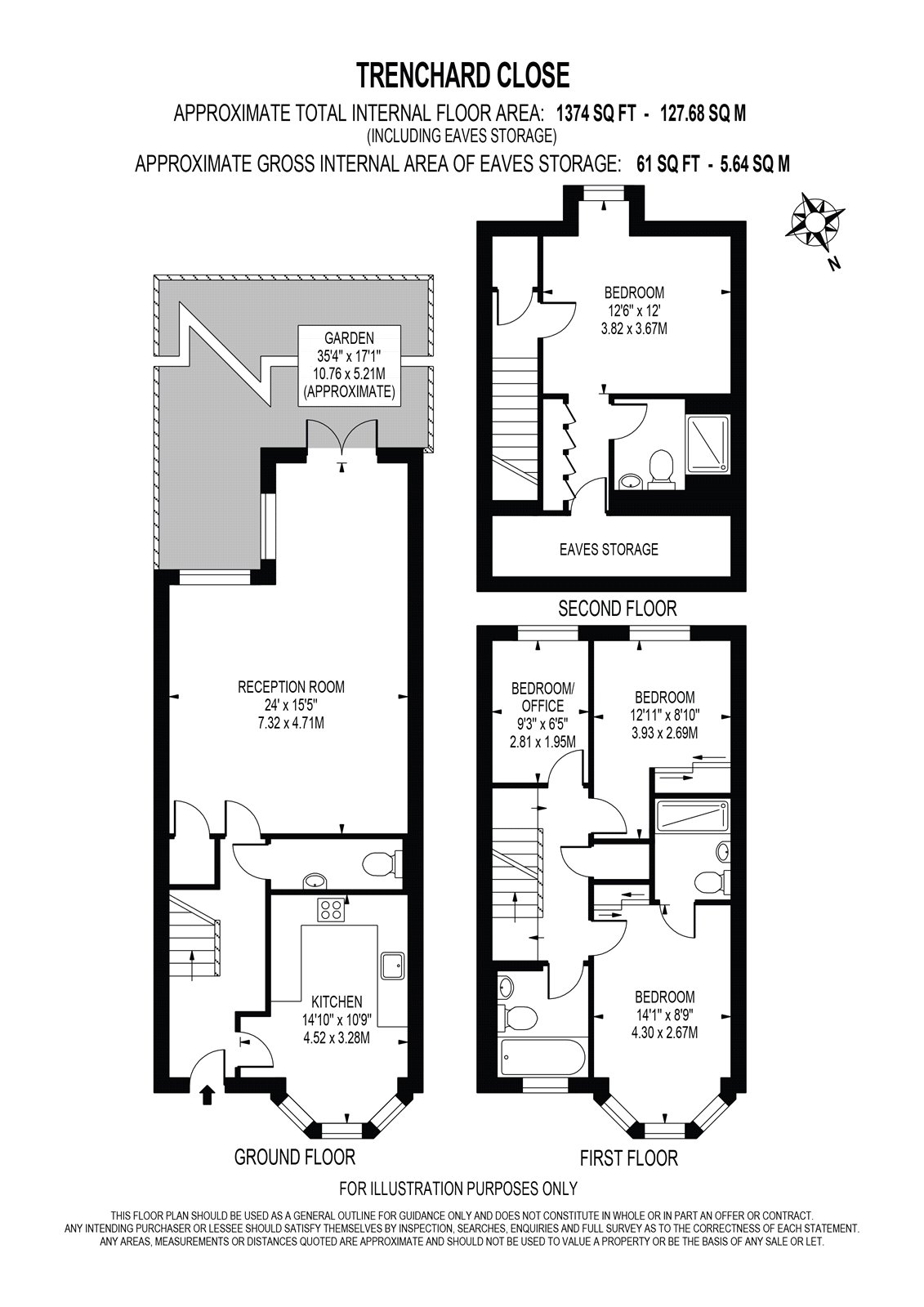 The top floor comprises a generous master bedroom with an en-suite shower room, built-in wardrobes, and additional eaves storage.