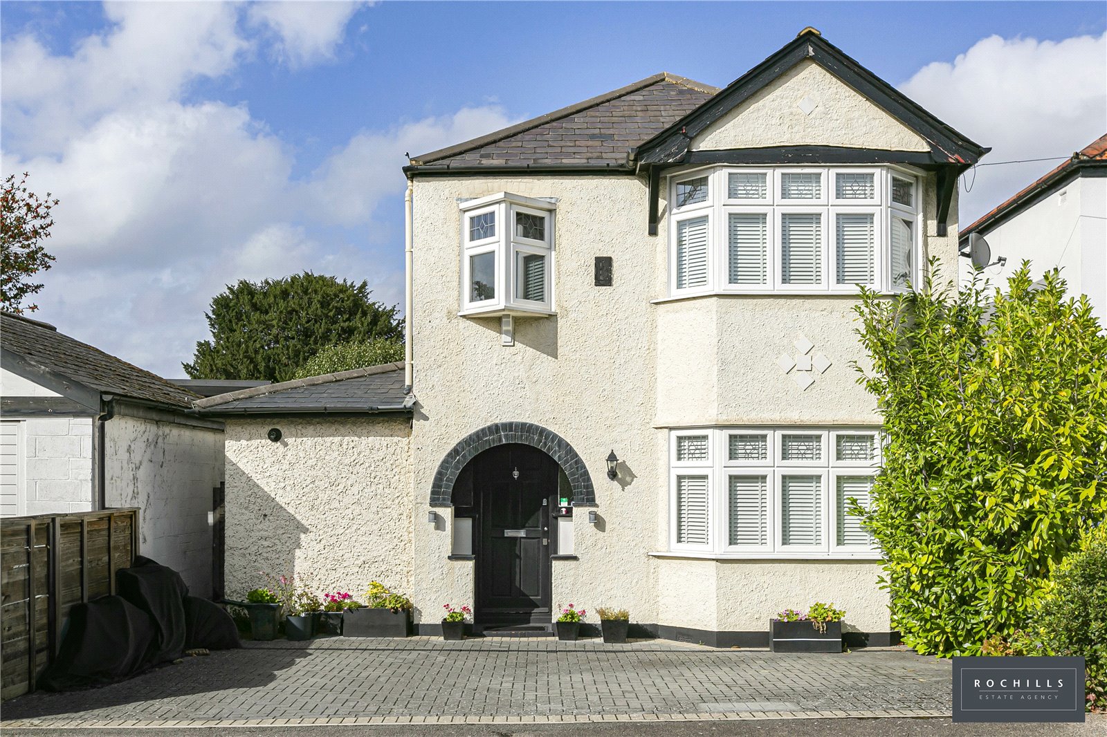 Outside, the well-kept garden offers a charming patio area, perfect for enjoying morning sun with outdoor furniture which then sweeps its way round the garden offering ample light. A summer house provides versatile space, ideal for a home office or additional storage. The driveway located at the front of the property has availability for up to 3 cars allowing ample space.