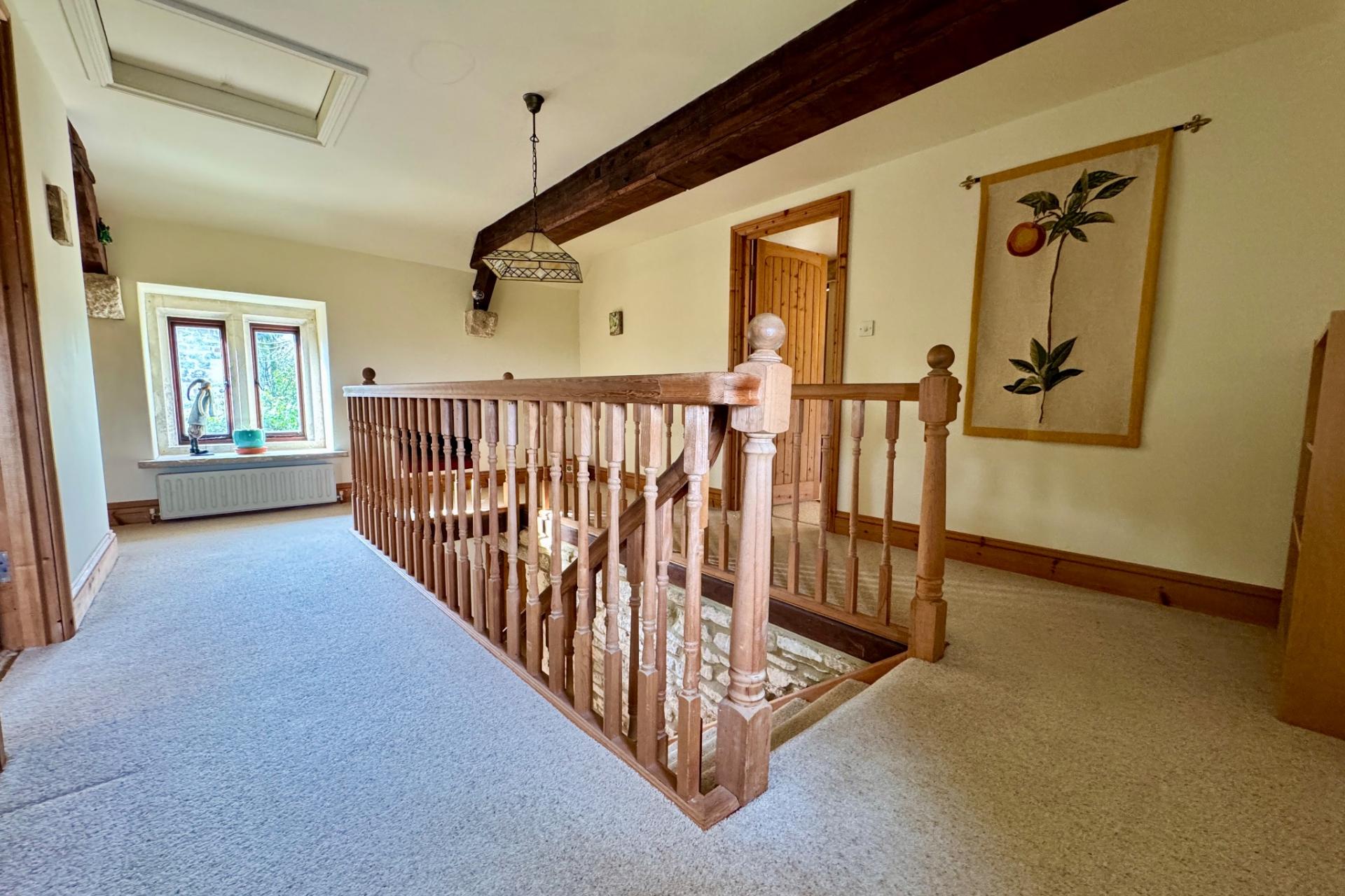 - ORIGINAL FEATURES INCLUDING BEAMED CEILINGS EXPOSED STONE WALLS, ATTRACTIVE PURBCK STONE FIREPLACE