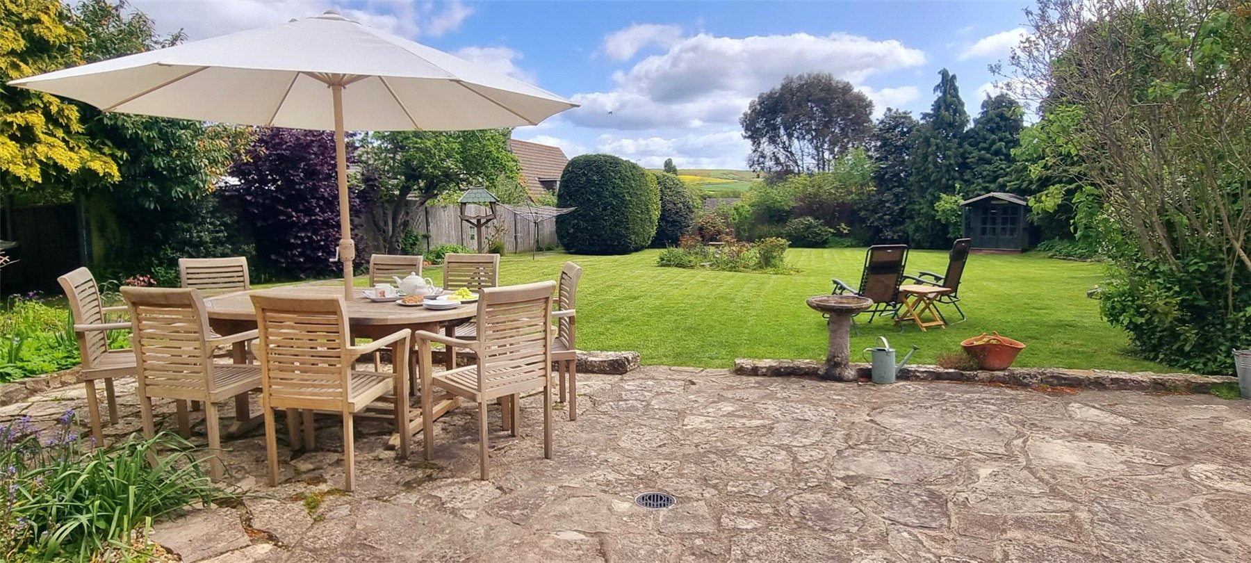 There is a wide stone patio, which runs the length of the cottage, and provides a dining area for entertaining. The GARDEN is a great place to catch the glorious morning sunshine. It is filled with mature shrubs and trees, including fruit trees, adding to the garden's charm.