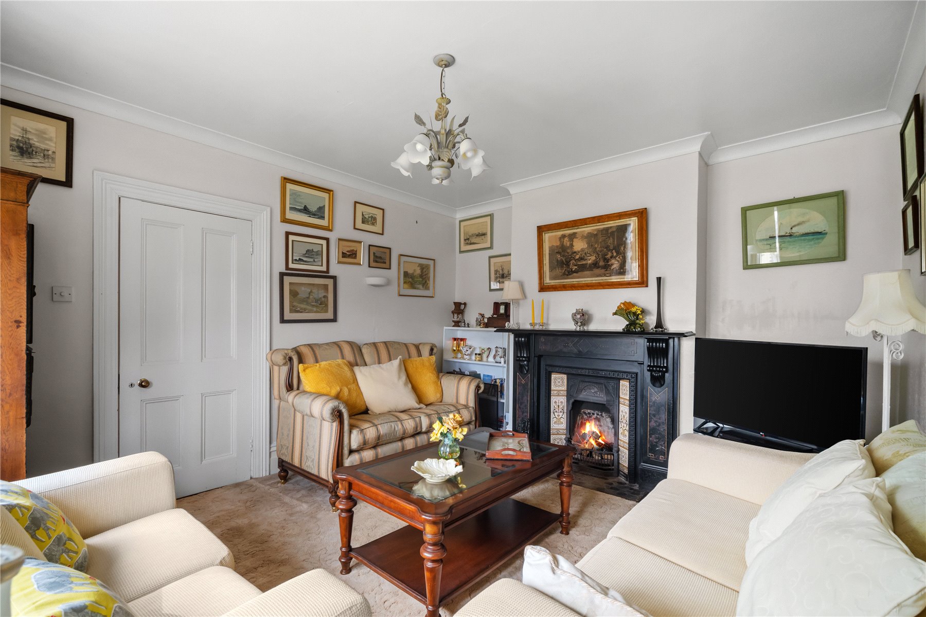 The SITTING ROOM has space for seating around the pretty original fireplace and the typical Victorian bow windows, allow streams of light into the room.