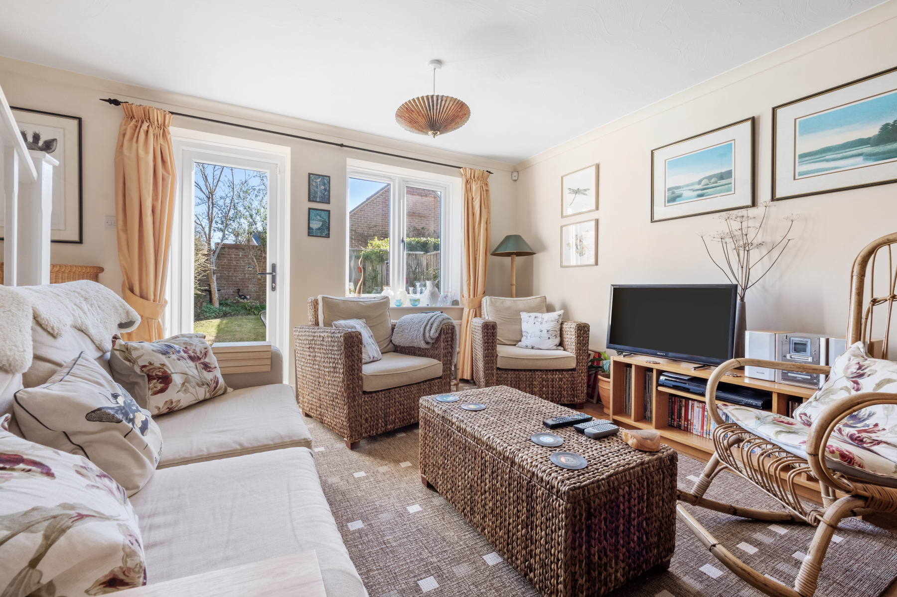 The SITTING/DINING ROOM draws natural light from the window and door, which leads into the garden.