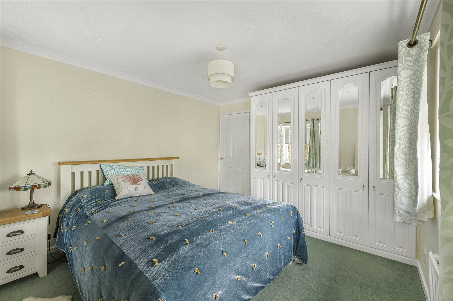 The front door opens into a good-sized ENTRANCE HALL with blue painted internal doors, which add a playful touch from a colourful palette.