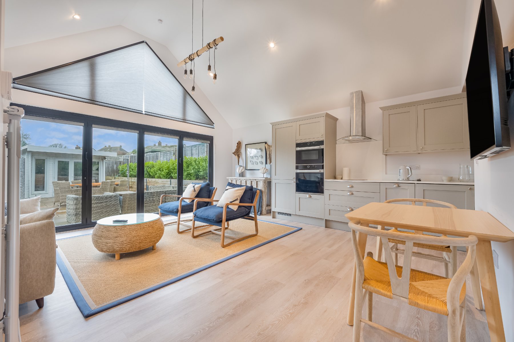 Built in 2023, this eco-friendly one-bedroom ANNEXE provides versatile accommodation, ideal for guests or as a peaceful home office. A spacious open plan SITTING ROOM with KITCHEN has bifold doors onto another terrace, bringing the 'outside in'. The DOUBLE BEDROOM is bright and spacious, and the bathroom is modern and contemporary with a large shower, W.C., and wash basin. The ANNEXE has its own Air Source Heat Pump ensuring the bills are kept to a minimum.