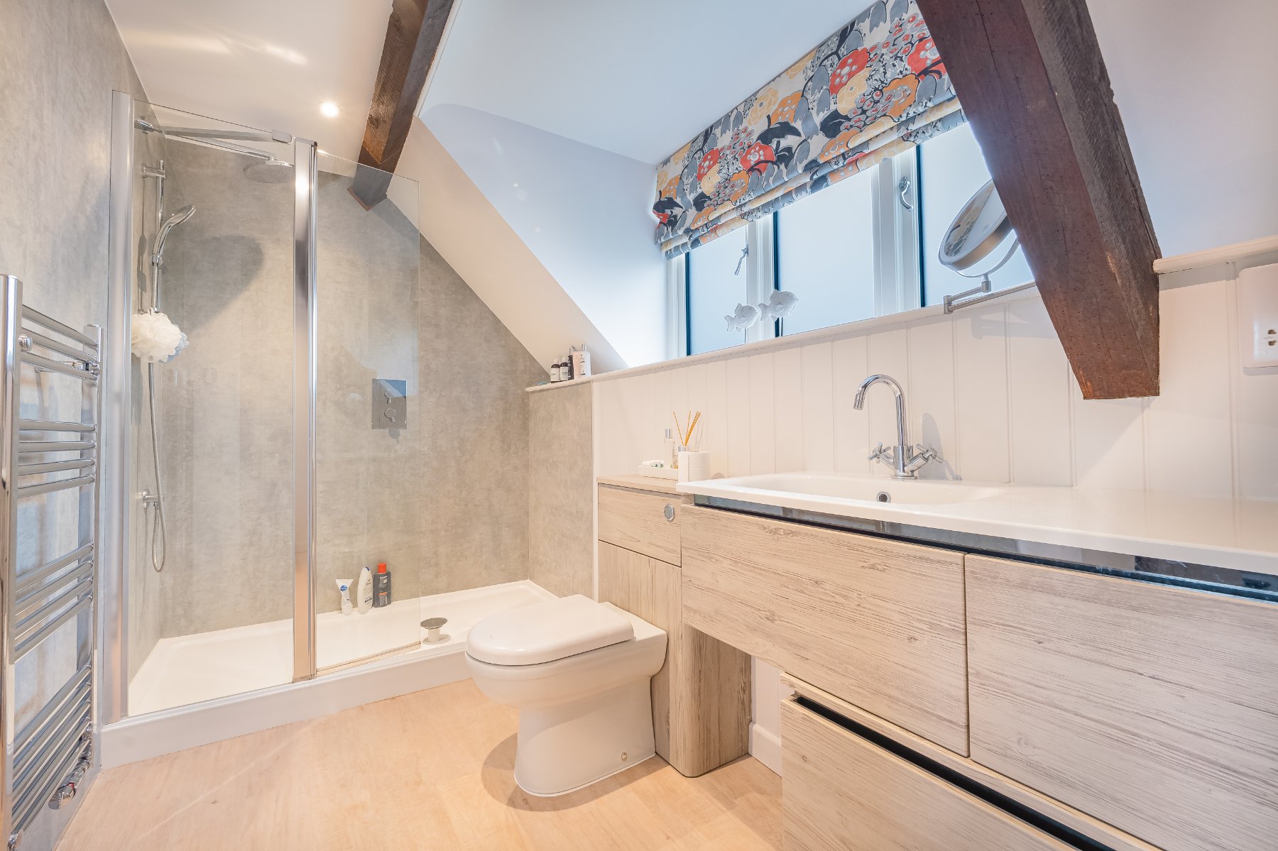 Stairs lead to the first floor, where you will discover three well-appointed BEDROOMS, each offering a serene escape from the bustle of daily life. The PRINCIPAL BEDROOM has a range of fitted wardrobes for storage and a beautifully appointed EN-SUITE SHOWER ROOM with large shower, W.C., and wash basin, combining functionality with a touch of luxury.