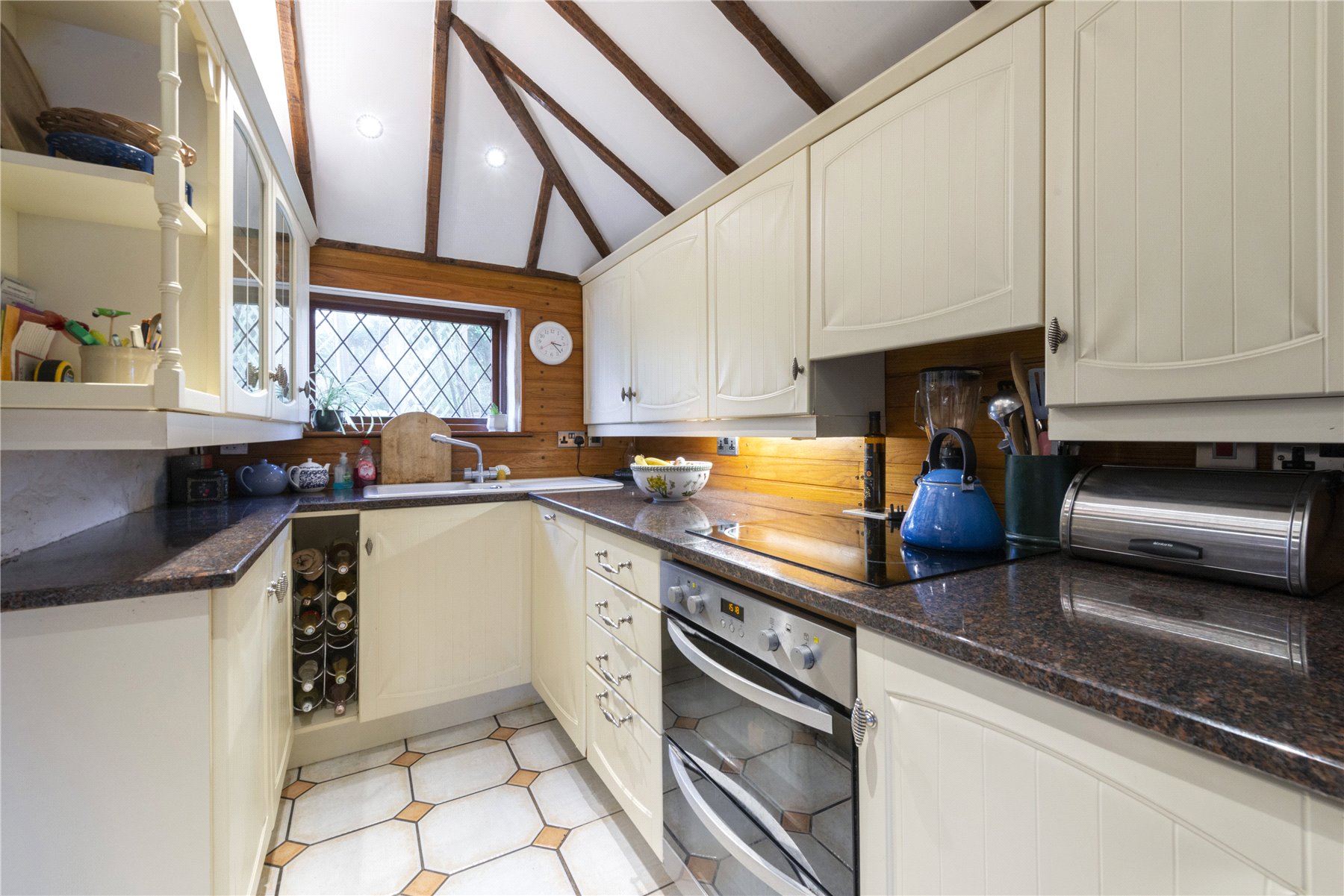 From the entrance VESTIBULE there is a W.C., to your right, before stepping into the cottage KITCHEN. A charming room with a vaulted beamed ceiling, a range of base, wall and drawer units, integrated oven/grill and induction hob, ceramic sink with waste disposal, water softener, drainer and mixer tap, dishwasher and fridge. The kitchen leads through into the SITTING/DINING ROOM, a pretty, light space with a lovely cosy 'cottage' feel to it. Your eye is immediately drawn to the large inglenook at the end of the room with its new, wood burner style electric fire and bread oven nook. This is a lovely social space, the real heart of the home, with plenty of space for sofas, chairs and a dining table. A door leads out to the front and a further door leads out to the first of two extensions. The GARDEN ROOM is a practical space for boots and shoes with doors out to the garden and it also flows through to the two downstairs bedrooms and bathroom. This area of the house is ideal for guests or working from home, as it is just tucked away from the main living space of the cottage. BEDROOM 2 at the front of the house is a double room with a built-in wardrobe. BEDROOM 3 is currently used as a home office, a lovely room overlooking the garden and ideal to either work from home or use an occasional guest bedroom. Next door the large and bright family BATHROOM has a corner bath, plus a separate shower, W.C., and hand basin.