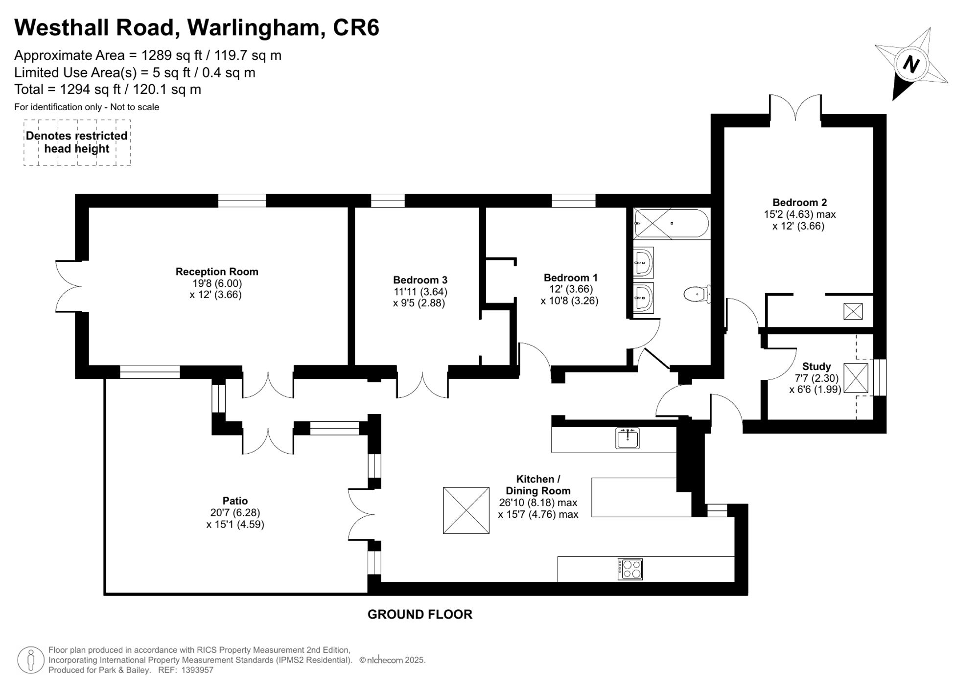 - Triple aspect reception room with fireplace
