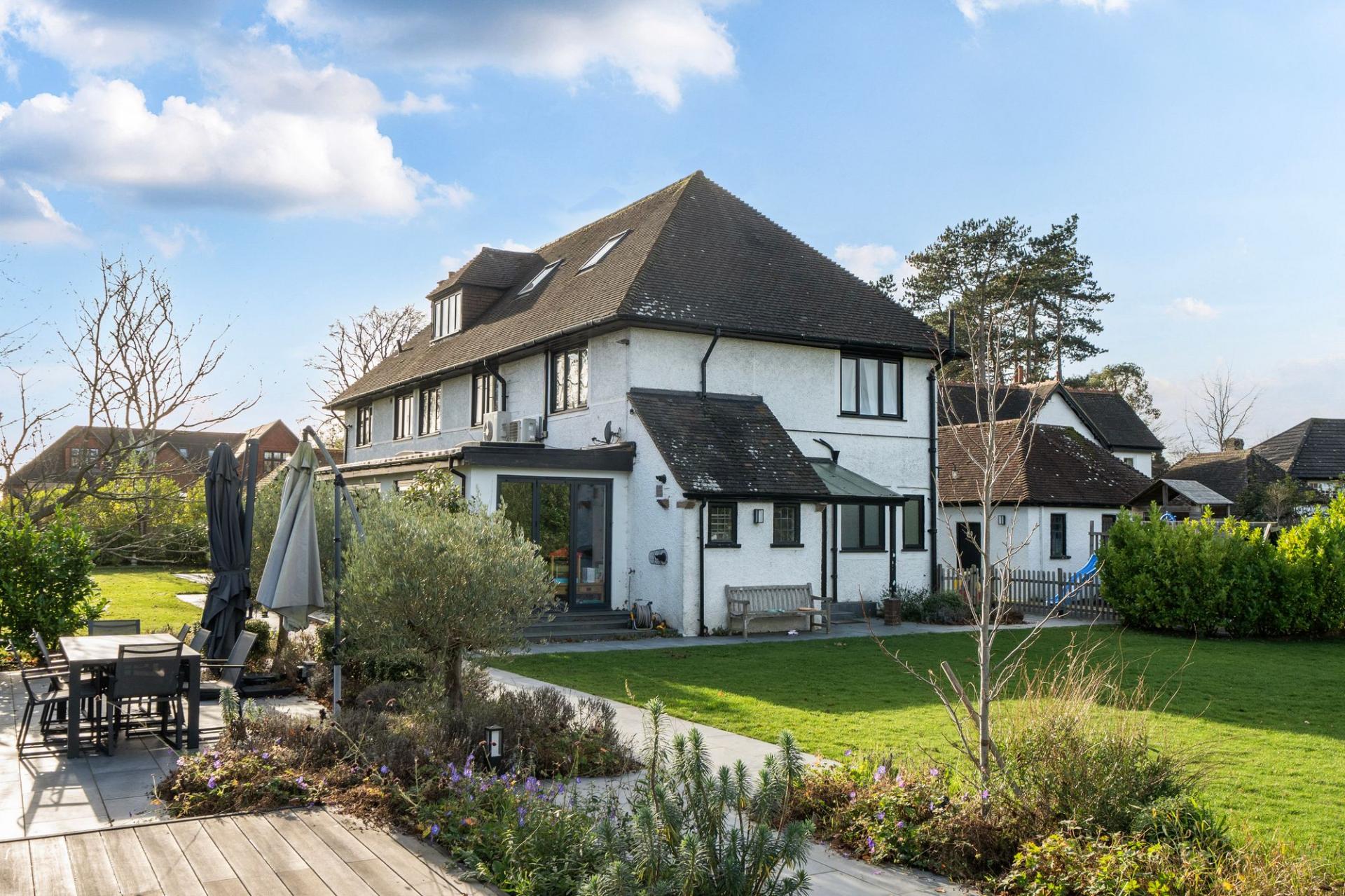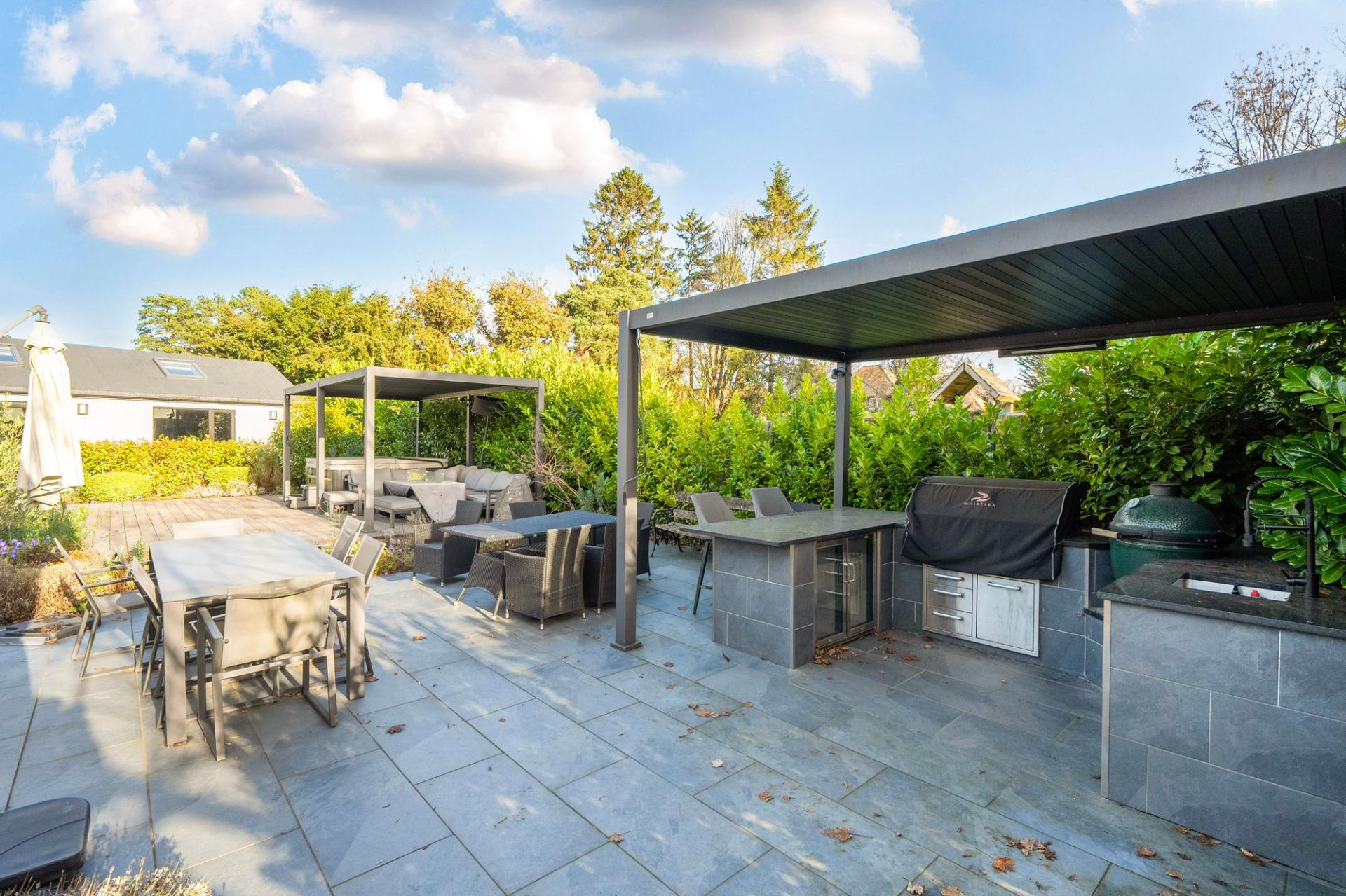 - Extensive gardens with outdoor kitchen, dining area, and children’s play space