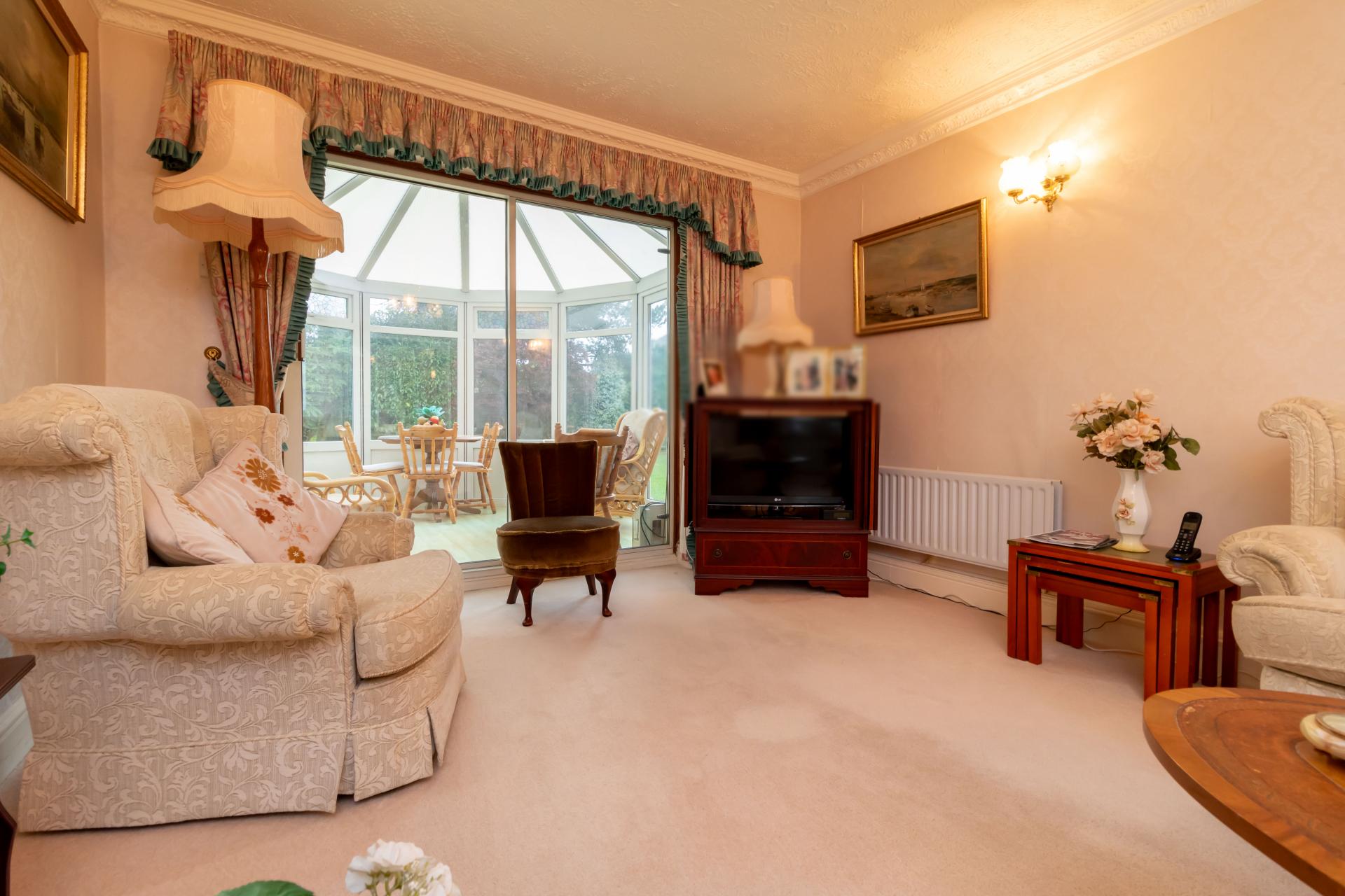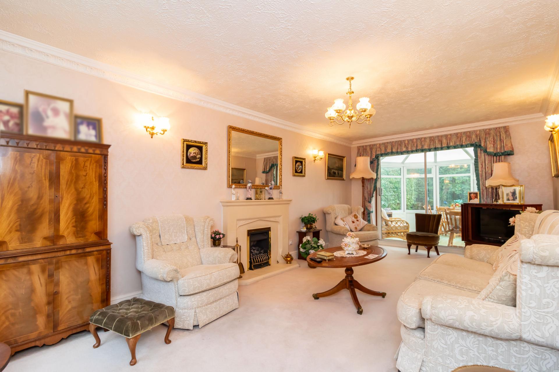 - LOUNGE WITH FEATURE FIREPLACE LEADING TO CONSERVATORY