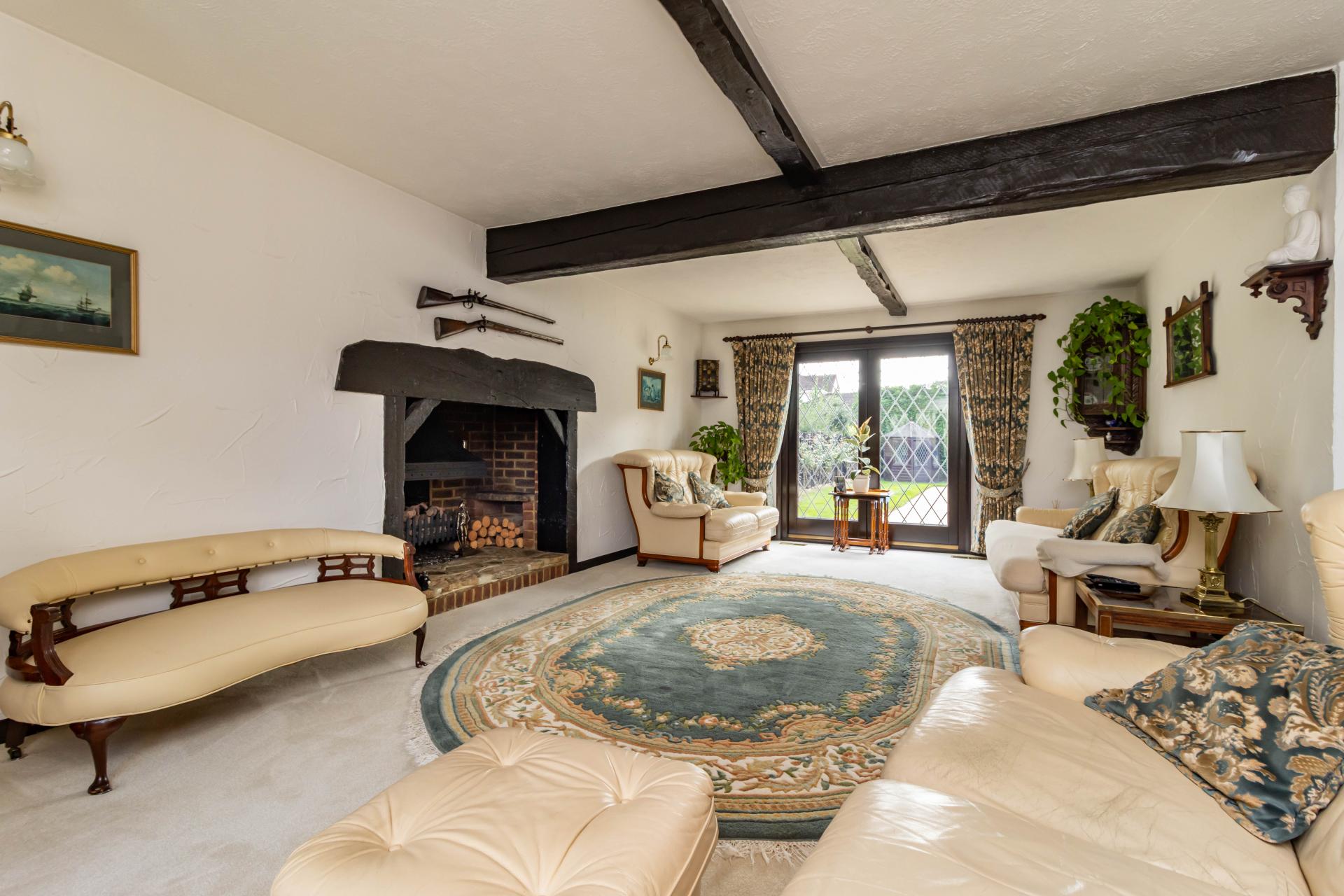 - Large living room with feature fireplace and character features