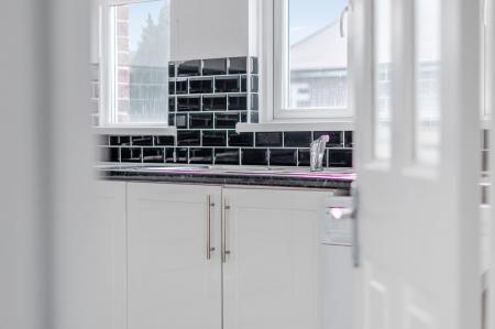 The modern fitted kitchen/breakfast room provides ample storage and workspace, with room for a dining table, making it a practical and sociable space.