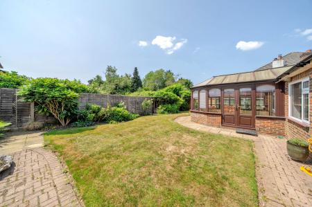 - South-facing rear garden with patio and lawn
