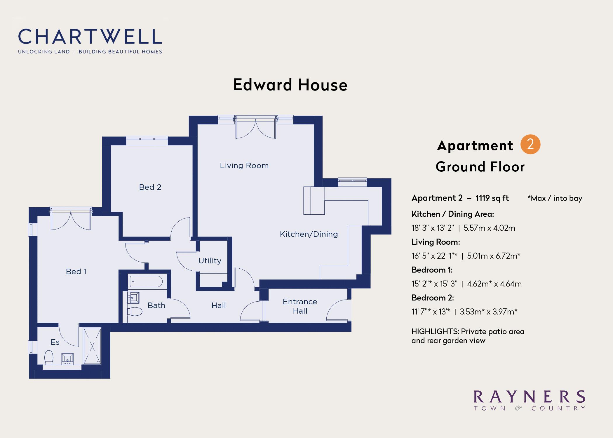 - Apartment 2 - 2 bedroom ground floor apartment 1119 sqft - with direct access to private garden area