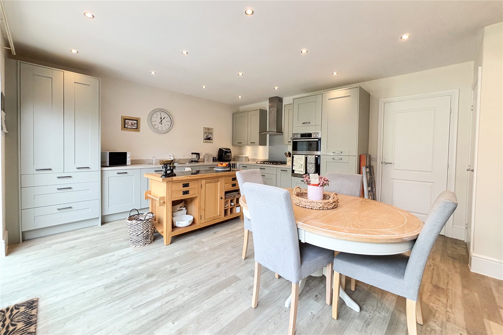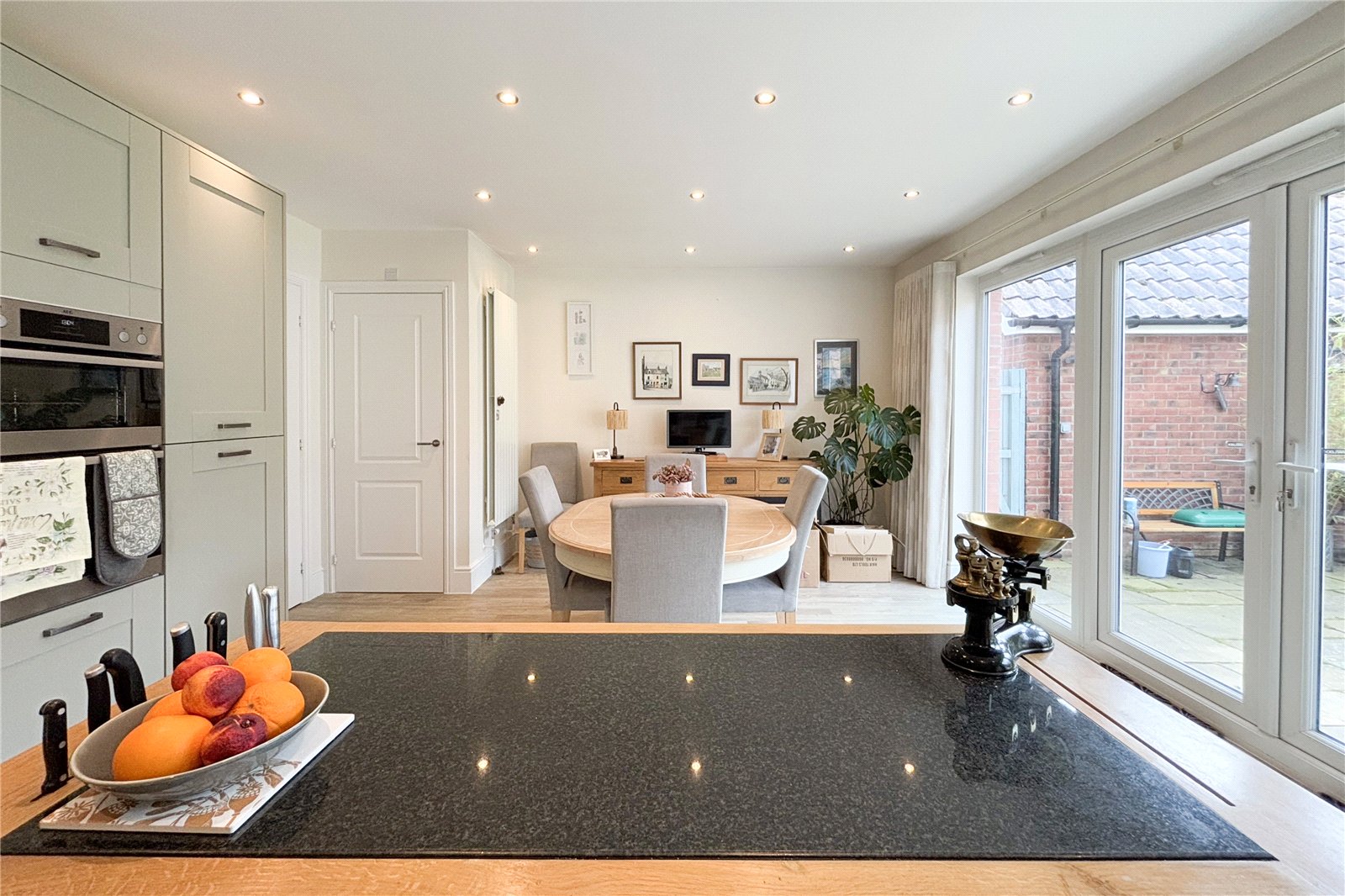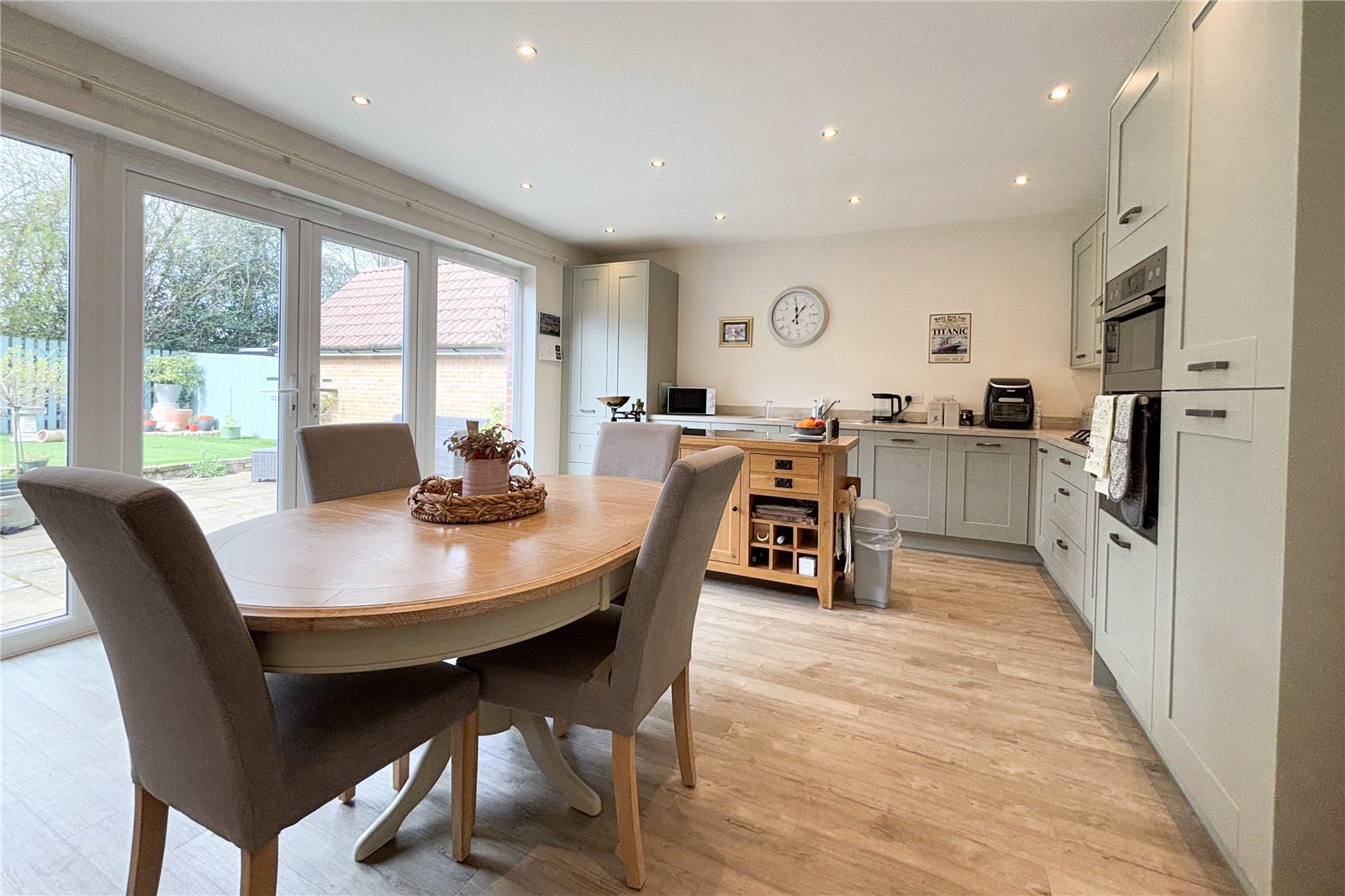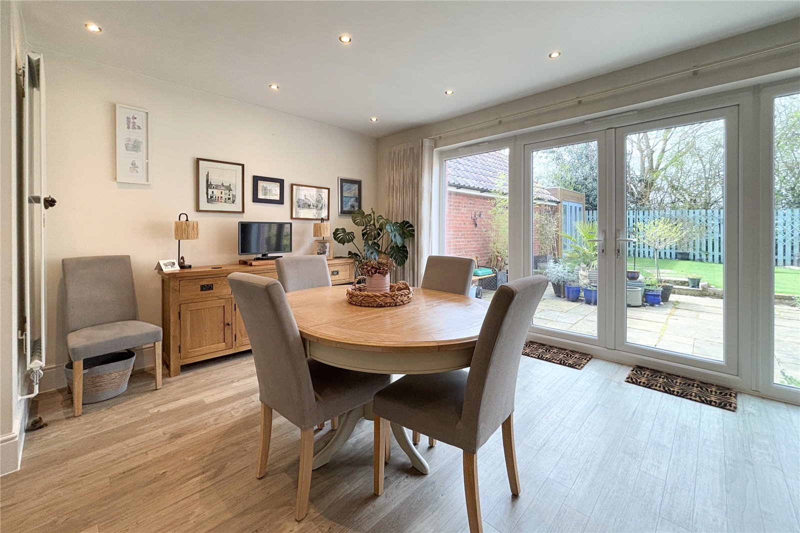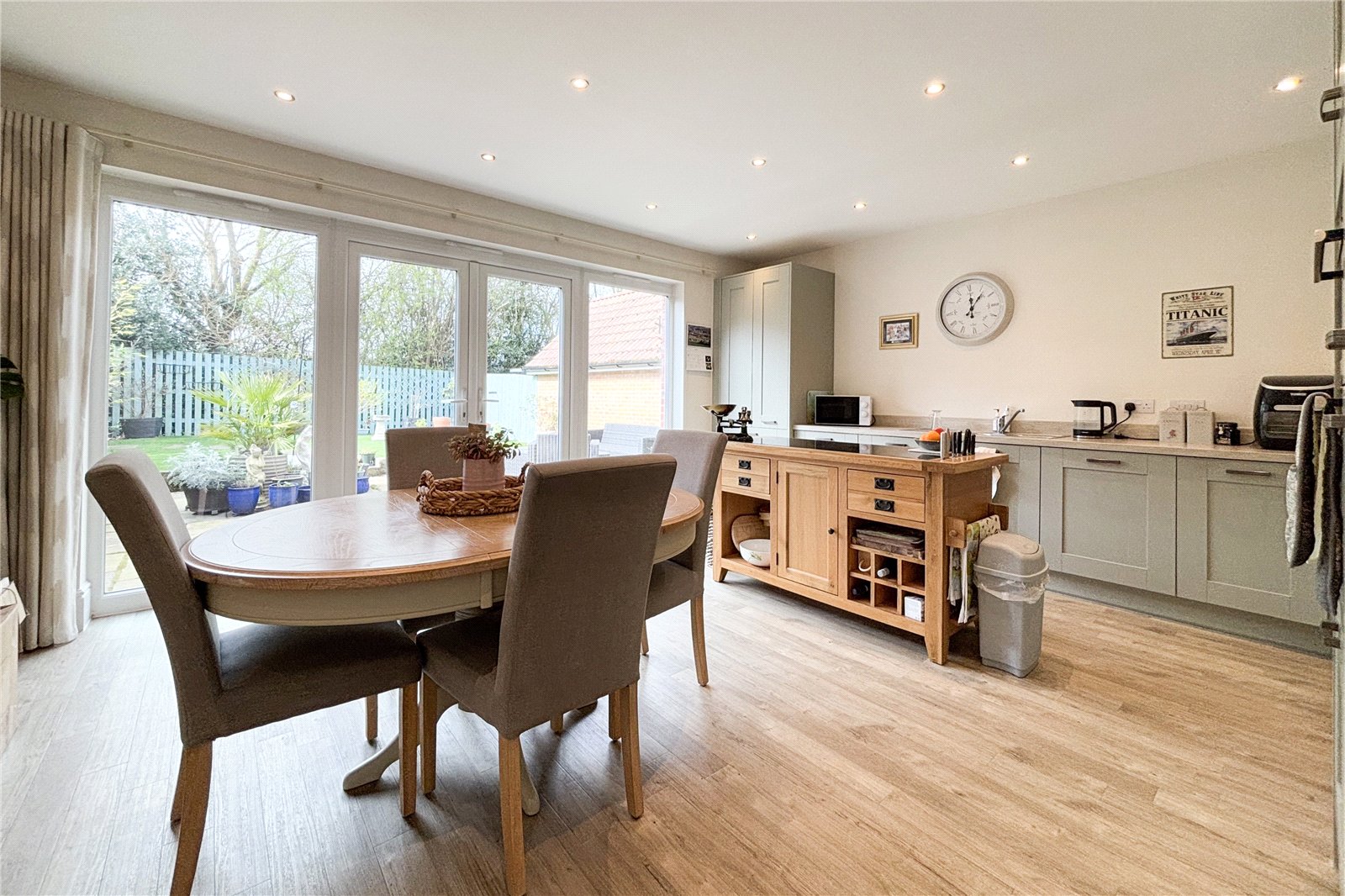 The open plan layout creates a bright and airy atmosphere as French doors open up onto the sunny garden. The modern kitchen provides plenty of storage and worktop space as well as good space for dining and entertaining. A further seperate living room and a downstairs cloakroom complete the downstairs living space. Upstairs the property continues to impress with four spacious bedrooms including an ensuite in the principal bedroom and a modern family bathroom. Bedroom 1 and 2 include in built wardrobes.