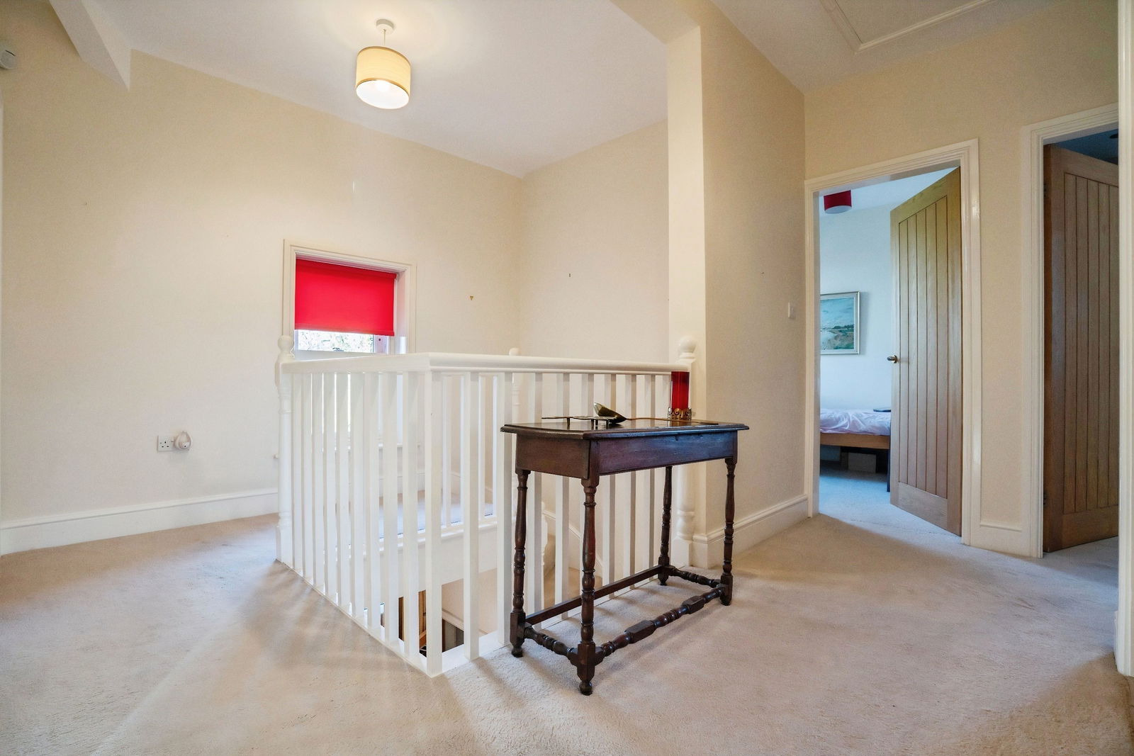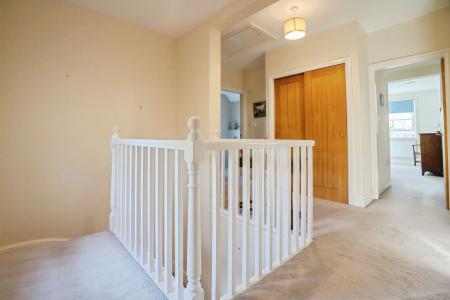To the first floor, an impressive statement landing leads to a generous principal bedroom enjoying far-reaching views and a private en-suite. There are three further well-proportioned bedrooms along with a stylish four-piece family bathroom.