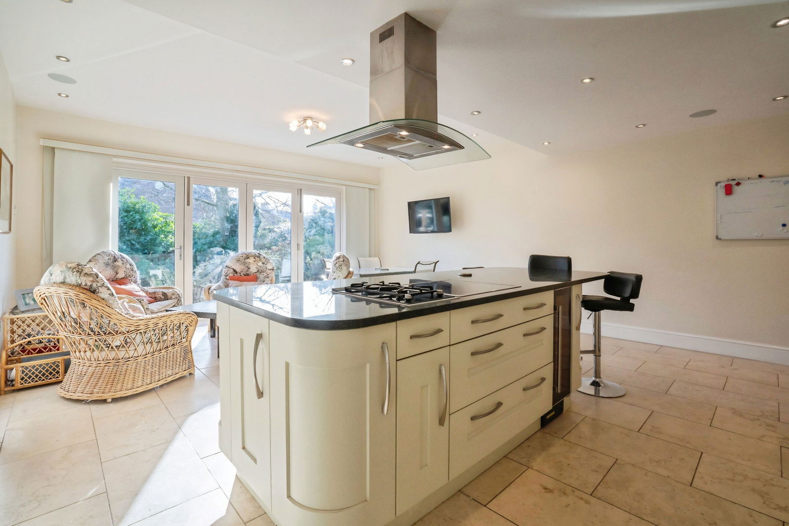 The well-presented accommodation begins with an inviting entrance hallway leading to a spacious lounge and a superb open-plan kitchen/diner, designed as the heart of the home. The kitchen is fitted with high-quality Neff appliances and features an instant hot water tap, underfloor heating, and bi-folding doors that open directly onto the garden, creating an excellent space for both everyday family life and entertaining. The ground floor also benefits from a utility room, WC, and a separate study.