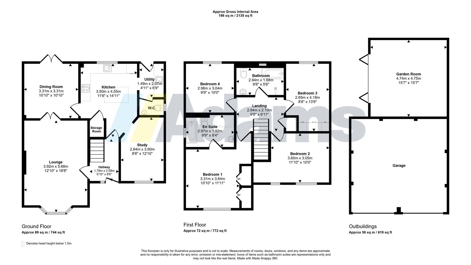 In brief, the accommodation comprises a welcoming entrance hallway, a spacious lounge, formal dining room, and an additional versatile reception room. The heart of the home is the contemporary kitchen, complete with a breakfast island and complemented by a separate utility room and ground floor WC.