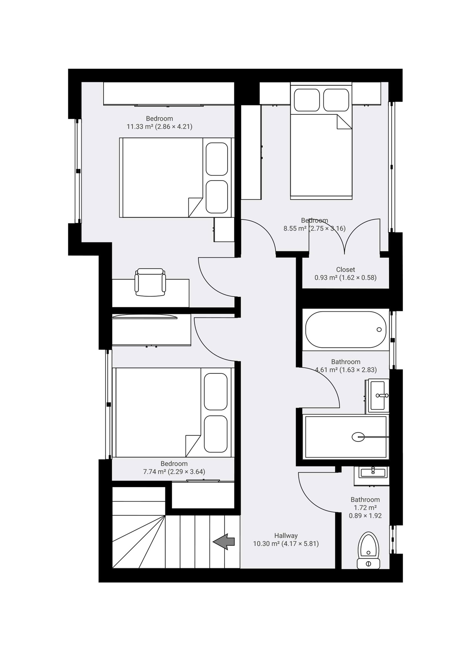 - Three well-proportioned bedrooms