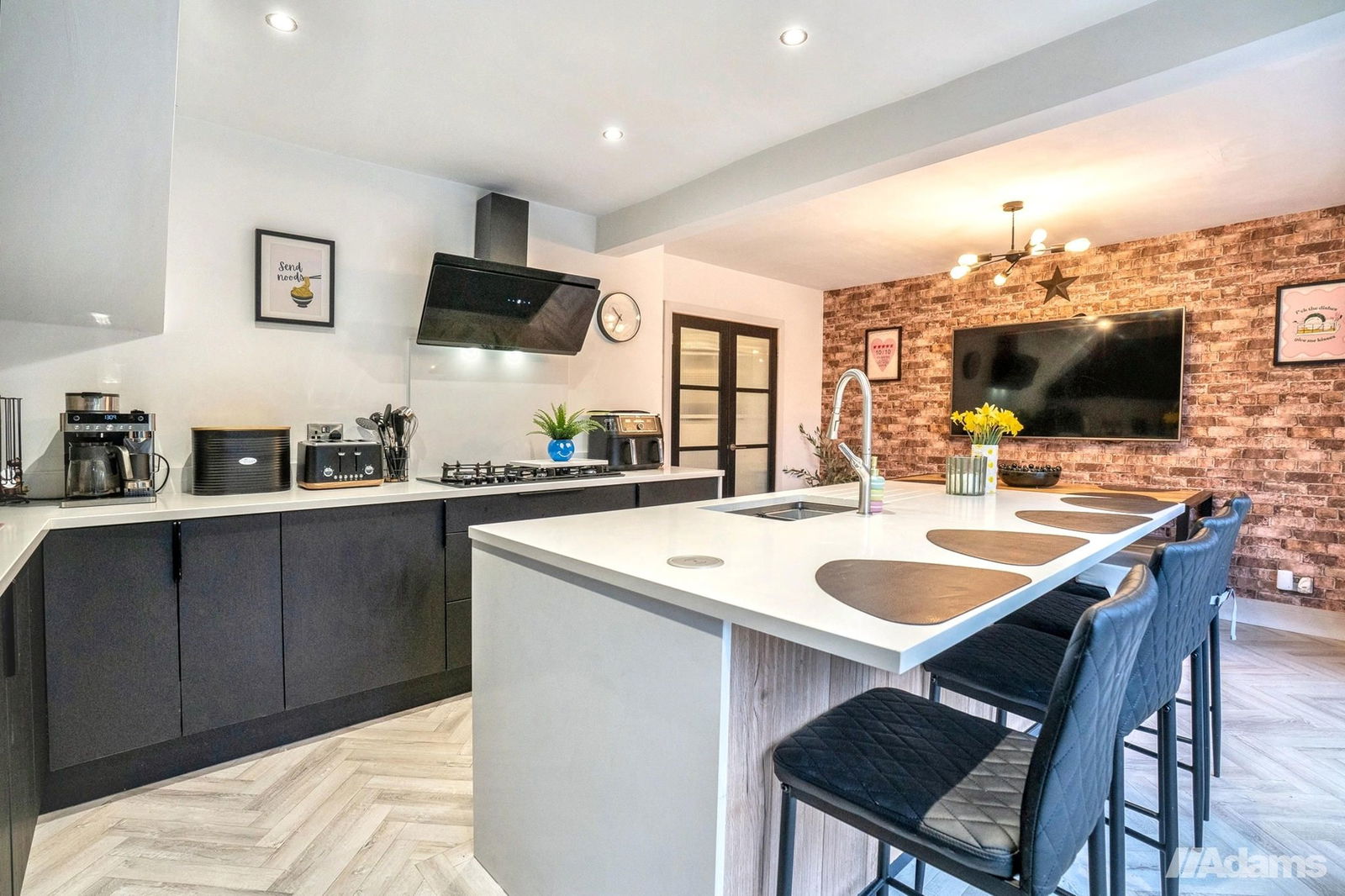 - Stunning open-plan kitchen diner with island and built-in appliances