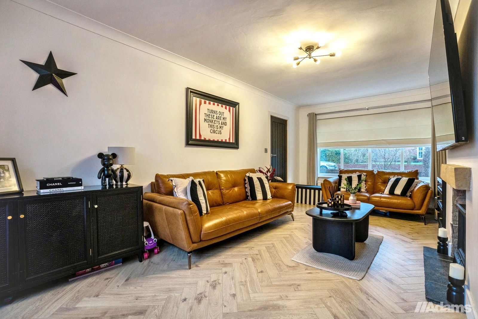 - Spacious lounge with feature log burner