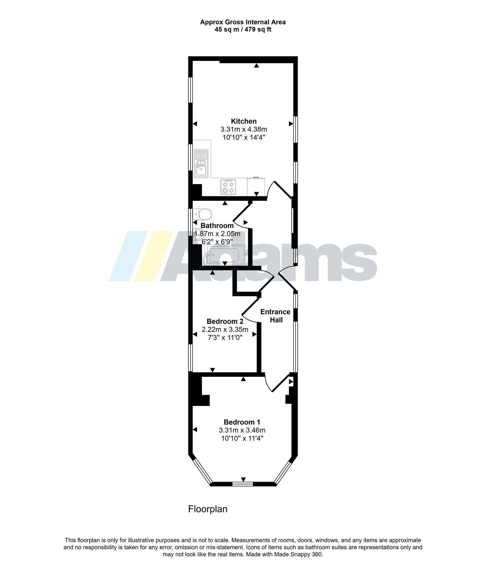 There are two well-proportioned bedrooms, including a spacious principal bedroom with attractive bay frontage, and a versatile second bedroom ideal as a guest room, nursery or home office. The accommodation is completed by a stylish, modern bathroom fitted with a contemporary suite.