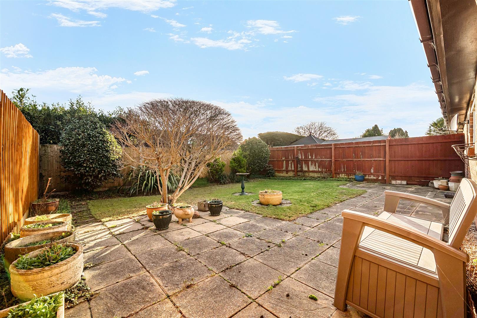 The property has been well looked after by my client and offers a low maintenance frontage with block paved parking leading to a single garage. On entering, the adjacent Sitting Room is a generous size centring on a gas coal effect fire and an archway draws you into a more intimate space for entertaining and relaxing with friends. The Kitchen has been fitted with ample wooden cupboards with an electric hob, Neff oven and grill, Hotpoint washing machine and a freestanding fridge/freezer; a doorway leads to outside. Additionally, there are three bedrooms, two of which are well proportioned doubles, filled with light, and overlooking the south facing garden. The bedrooms are complimented by a Shower Room with a Mira electric shower, W/C and wash hand basin with vanity storage. Outside the south facing back garden is private and tranquil with a terrace, an area of lawn, some mature shrubs and tree; there is also gated side access.