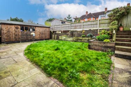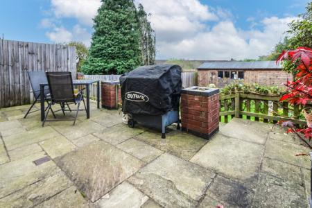 To the rear of the property is a tasteful landscaped South East facing garden with Indian sandstone paving slabs to the top patio area, it also has a good sized lawned garden area with a fantastic sized outbuilding that could be used for storage or converted to a studio, office, games room or gym / bar, it already has power and lighting and is insulated. The front is a pebble driveway with parking for at least two vehicles.