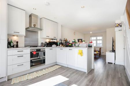 The dining kitchen is of a good size and has ample work space, a double oven, four ring gas hob, integrated dishwasher, fridge/freezer, stairs rising to the first floor with a useful storage cupboard below, French doors to the rear, space for a table to eat, and access to the sitting room. The sitting room is of a good size and has a window to the front.