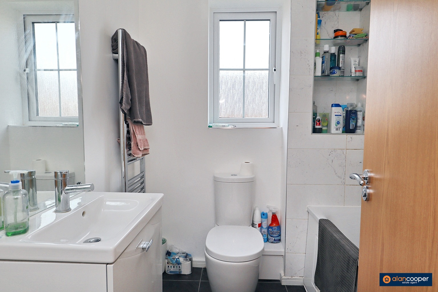 Family Bathroom6' 2" x 6' 3"Having a modern white suite comprising a panelled bath with shower over, wash hand basin. with cupboard below and low level WC. Heated towel rail and upvc sealed unit double glazed window.