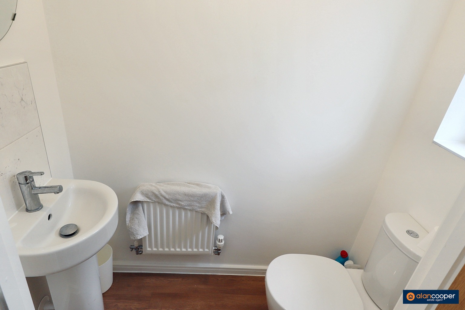 Guests CloakroomHaving a white suite comprising a pedestal wash hand basin and low level WC. Central heating radiator and upvc sealed unit double glazed window.