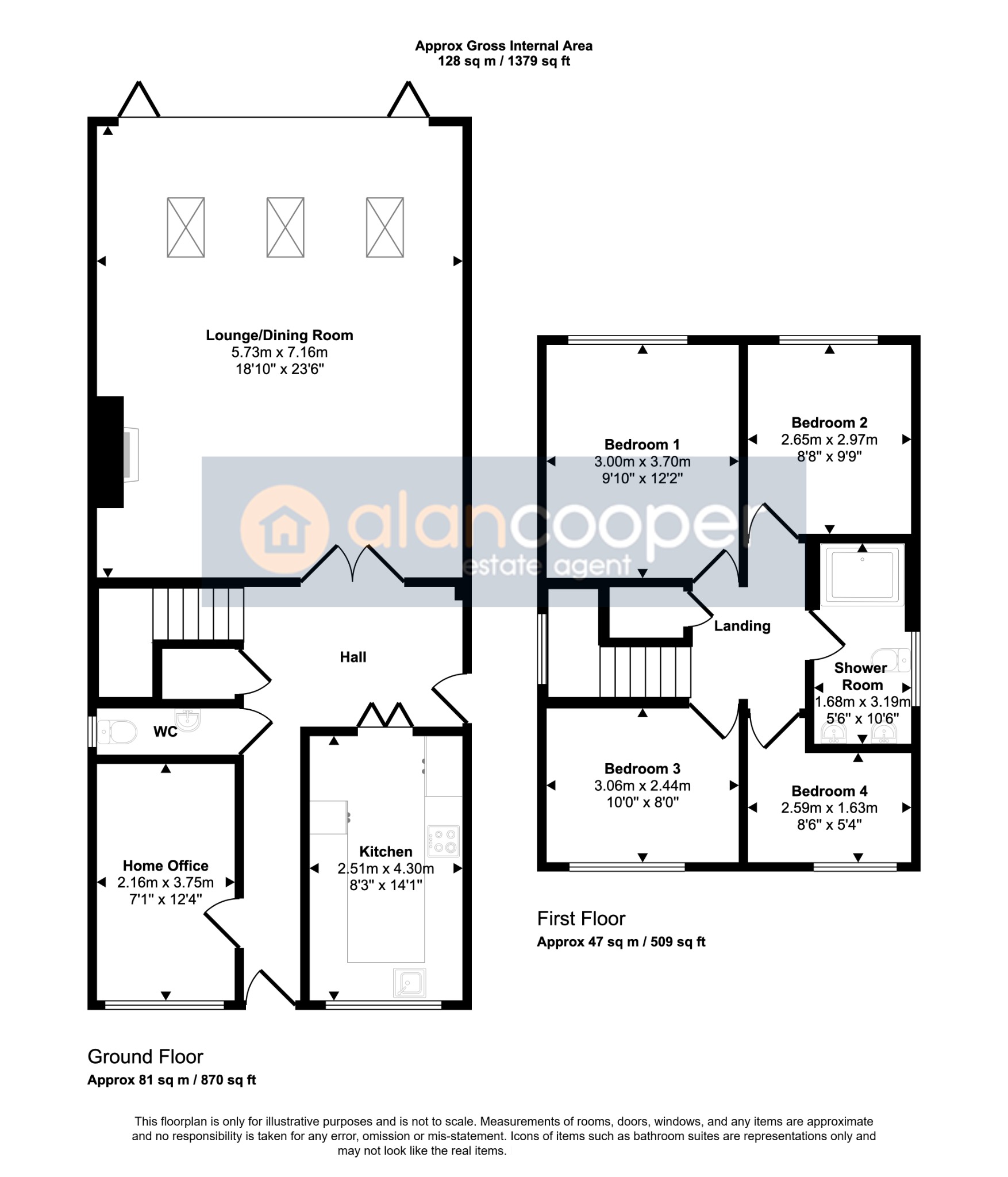 Agents NoteWe have not tested any of the electrical, central heating or sanitary ware appliances. Purchasers should make their own investigations as to the workings of the relevant items. Floor plans are for identification purposes only and not to scale. All room measurements and mileages quoted in these sales details are approximate. Subjective comments in these details imply the opinion of the selling Agent at the time these details were prepared. Naturally, the opinions of purchasers may differ. These sales details are produced in good faith to offer a guide only and do not constitute any part of a contract or offer. We would advise that fixtures and fittings included within the sale are confirmed by the purchaser at the point of offer. Images used within these details are under copyright to Alan Cooper Estates and under no circumstances are to be reproduced by a third party without prior permission.