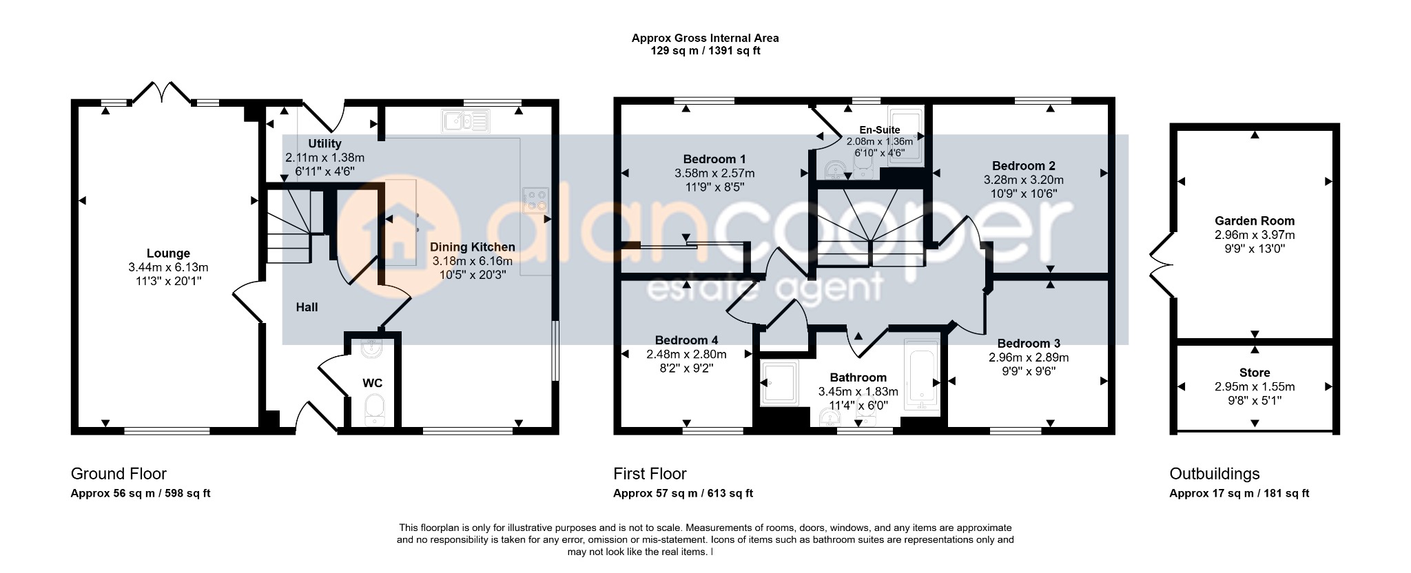 Agents NoteWe have not tested any of the electrical, central heating or sanitary ware appliances. Purchasers should make their own investigations as to the workings of the relevant items. Floor plans are for identification purposes only and not to scale. All room measurements and mileages quoted in these sales details are approximate. Subjective comments in these details imply the opinion of the selling Agent at the time these details were prepared. Naturally, the opinions of purchasers may differ. These sales details are produced in good faith to offer a guide only and do not constitute any part of a contract or offer. We would advise that fixtures and fittings included within the sale are confirmed by the purchaser at the point of offer. Images used within these details are under copyright to Alan Cooper Estates and under no circumstances are to be reproduced by a third party without prior permission.