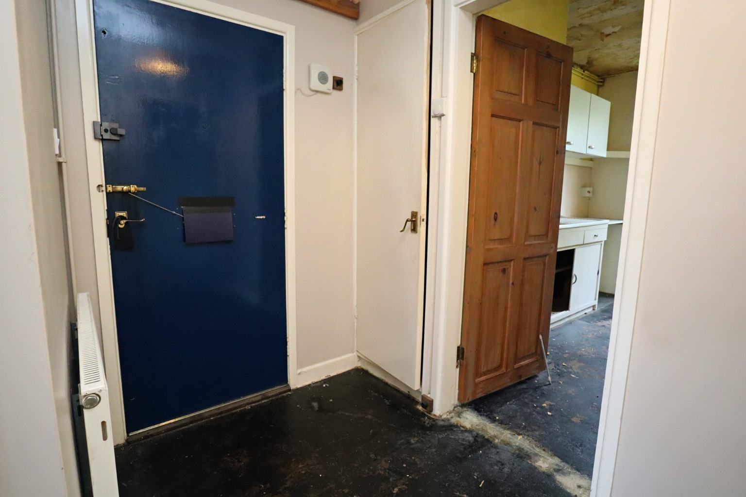 Having a front entrance door, central heating radiator and built-in cupboard.