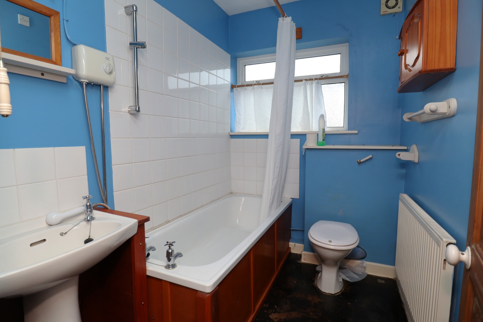 BathroomHaving a white suite comprising of a panelled bath with electric shower, pedestal wash hand basin and low level WC. Central heating radiator and upvc sealed unit double glazed window.