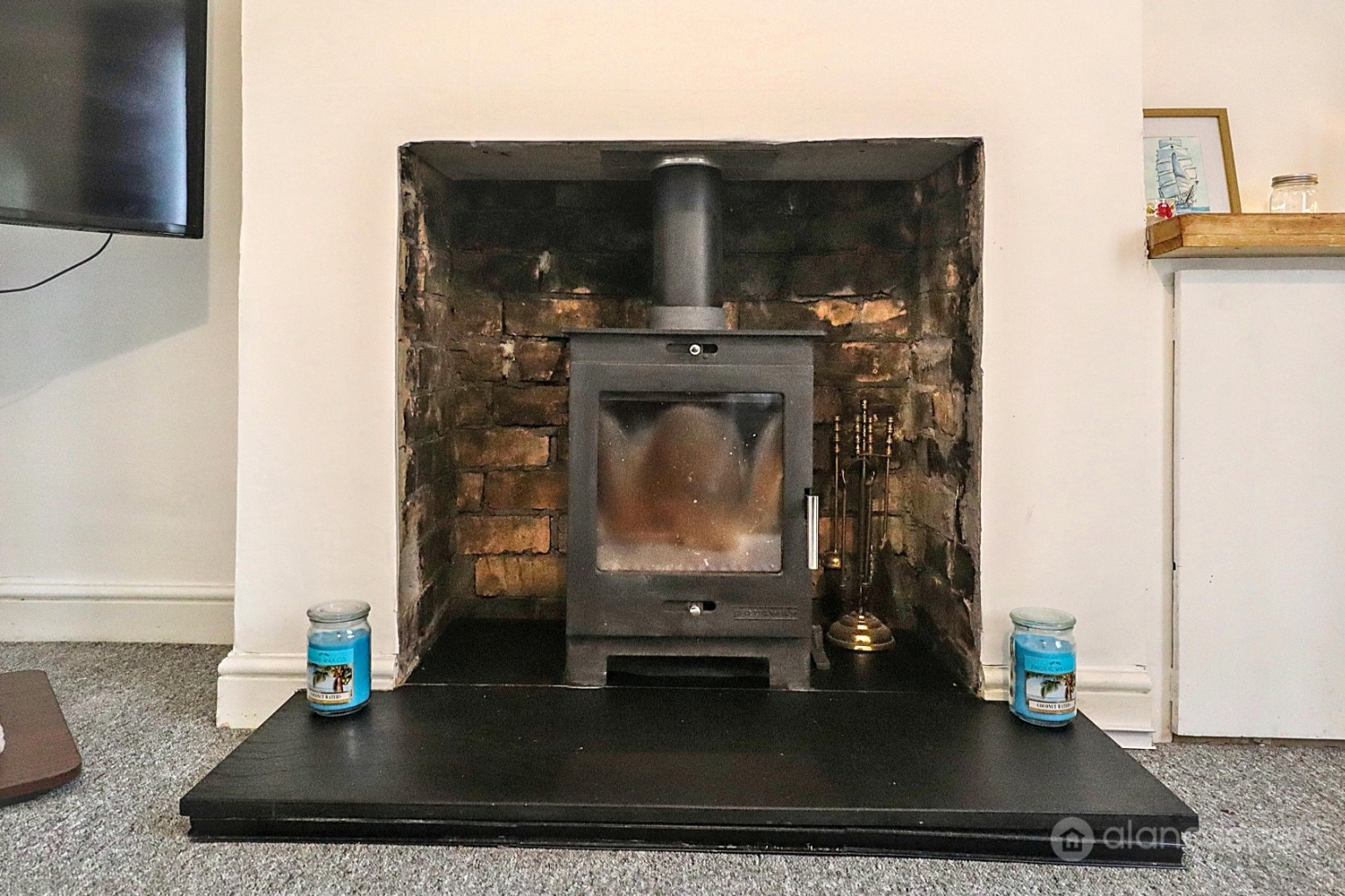 Upon entering the property, a welcoming front porch, accessed via a double-glazed door, leads directly into the inviting front lounge. This comfortable reception room is a true highlight, featuring a front double-glazed window that allows natural light to flood the space, a radiator for warmth, and a charming multi-fuel burner, perfect for creating a cosy atmosphere during colder months. This feature not only adds character but also offers an efficient heating solution.