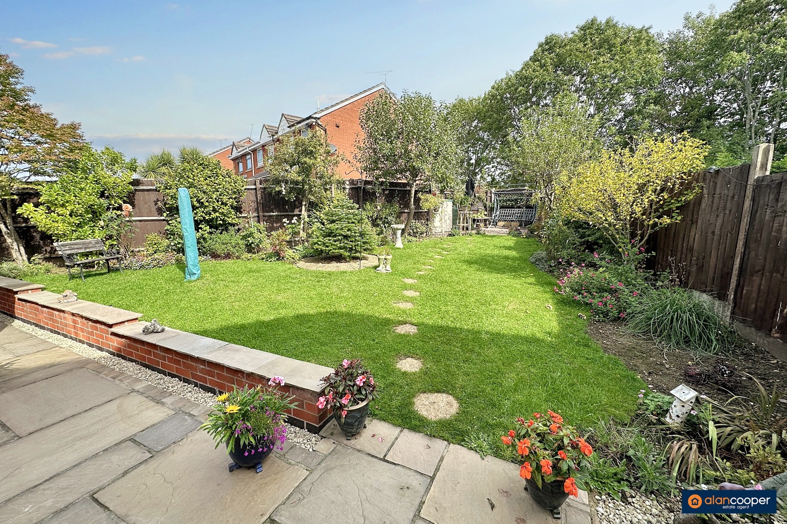 Outside, the property continues to impress with a lovely rear garden. This private outdoor space features a paved patio area, perfect for al fresco dining and relaxation, a well maintained lawn, and thoughtfully stocked flower beds that add colour and charm. The garden offers a peaceful retreat and a safe area for children to play.