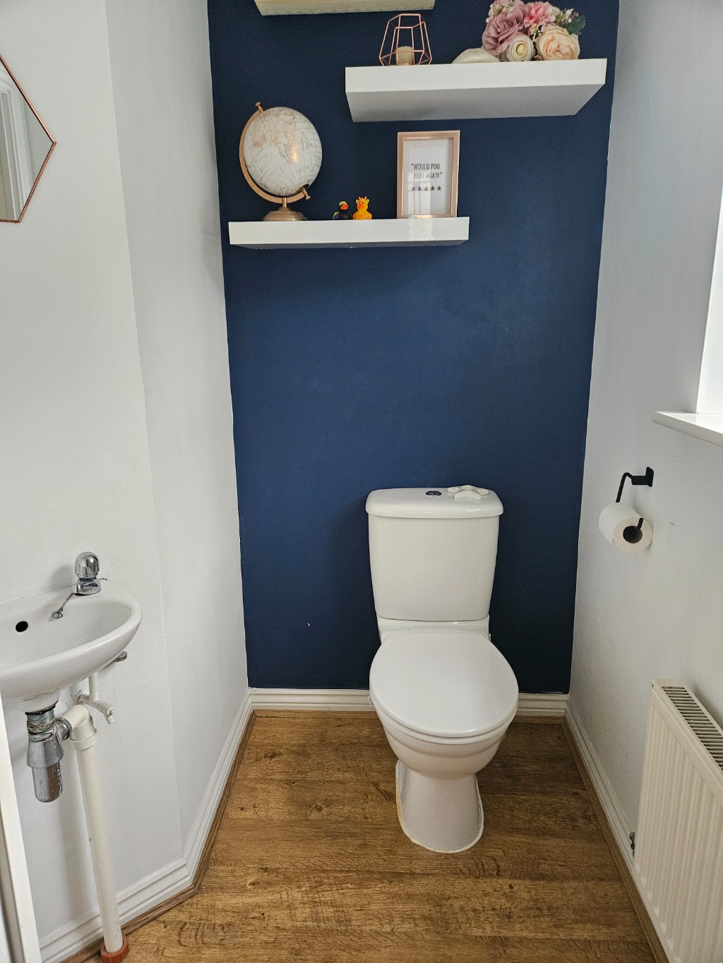 Guests CloakroomHaving a white suite comprising a wash hand basin and low-level WC. Central heating radiator and UPVC sealed unit double glazed window.