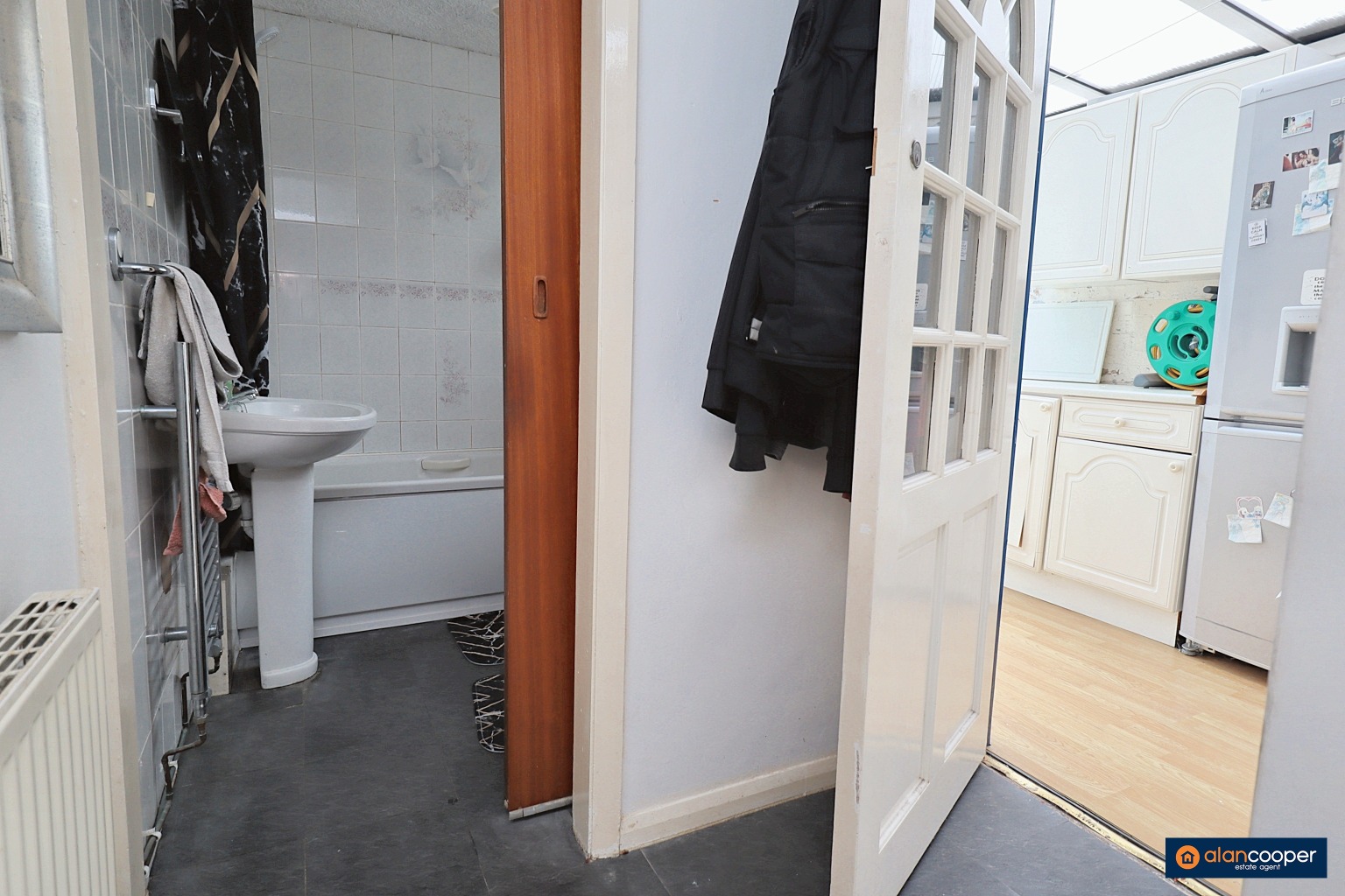 Inner HallCentral heating radiator and glazed door leading to the lean-to utility area.