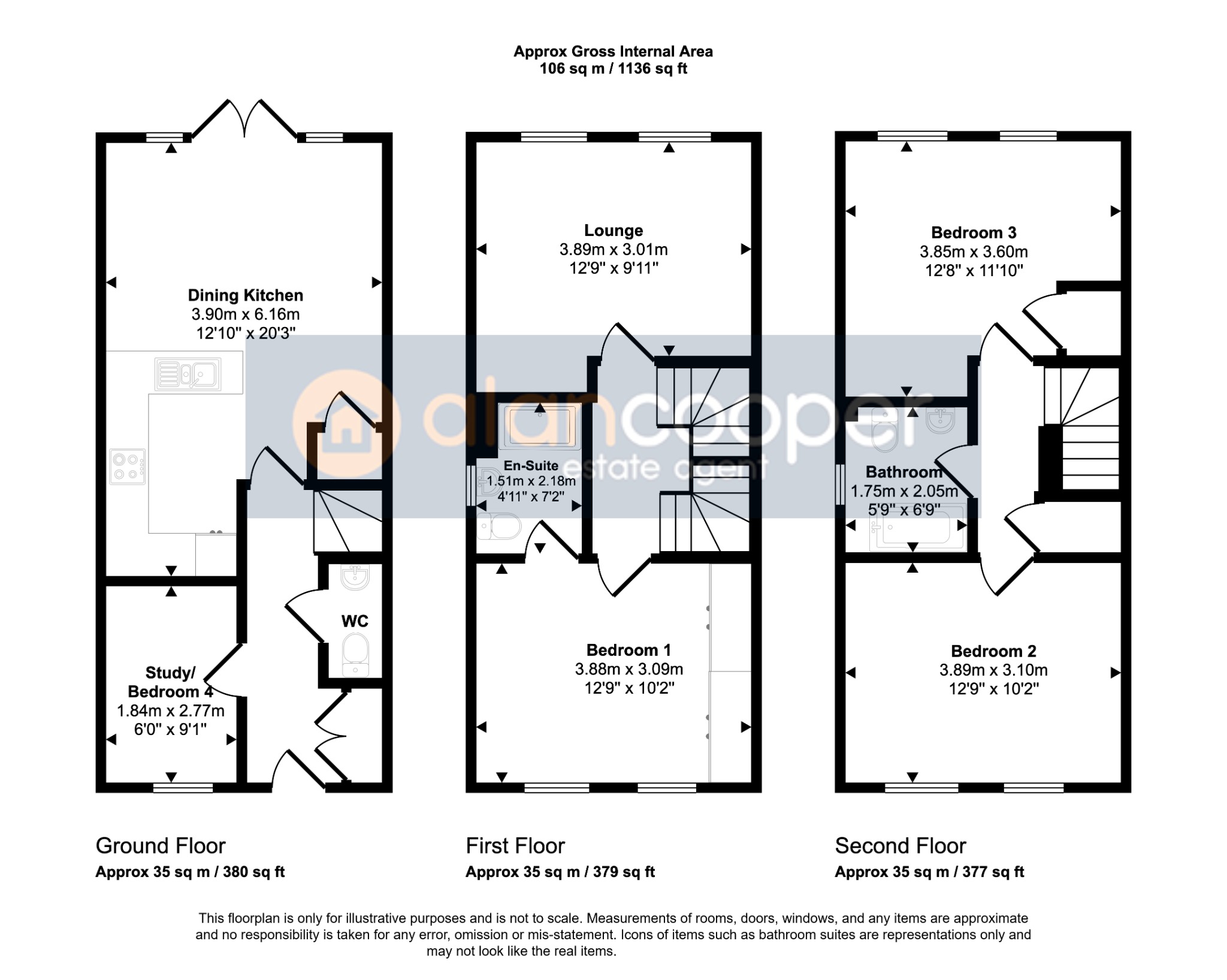 Agents NoteWe have not tested any of the electrical, central heating or sanitary ware appliances. Purchasers should make their own investigations as to the workings of the relevant items. Floor plans are for identification purposes only and not to scale. All room measurements and mileages quoted in these sales details are approximate. Subjective comments in these details imply the opinion of the selling Agent at the time these details were prepared. Naturally, the opinions of purchasers may differ. These sales details are produced in good faith to offer a guide only and do not constitute any part of a contract or offer. We would advise that fixtures and fittings included within the sale are confirmed by the purchaser at the point of offer. Images used within these details are under copyright to Alan Cooper Estates and under no circumstances are to be reproduced by a third party without prior permission.