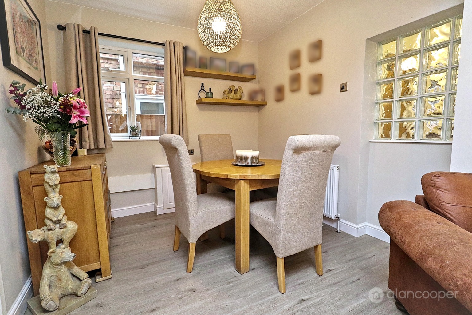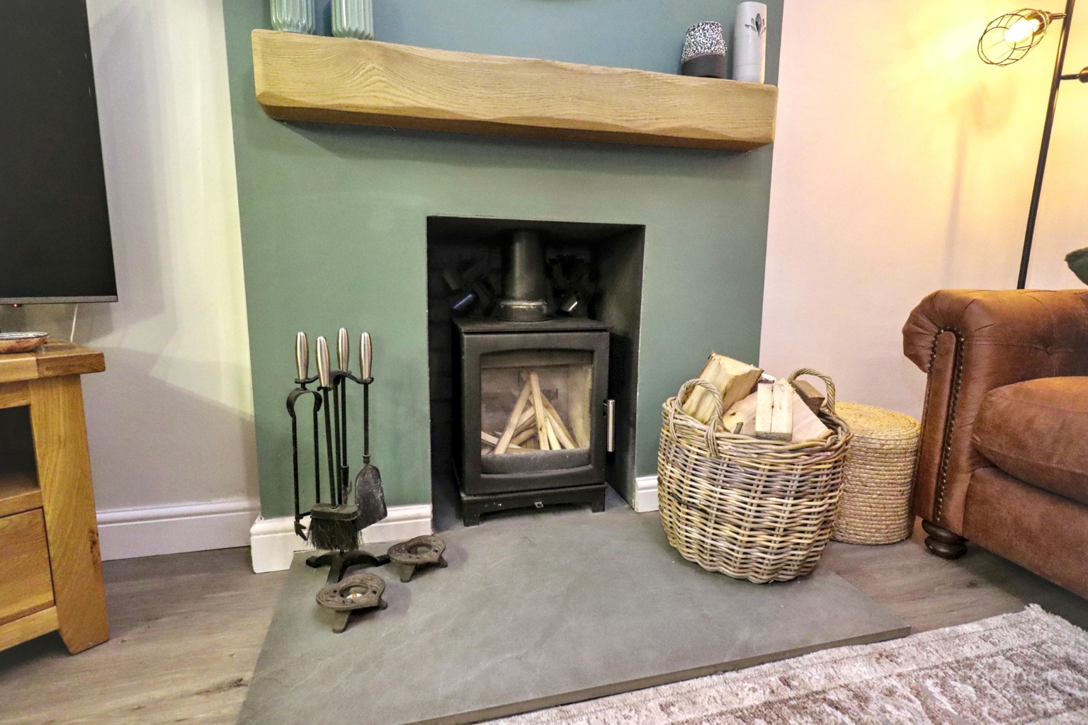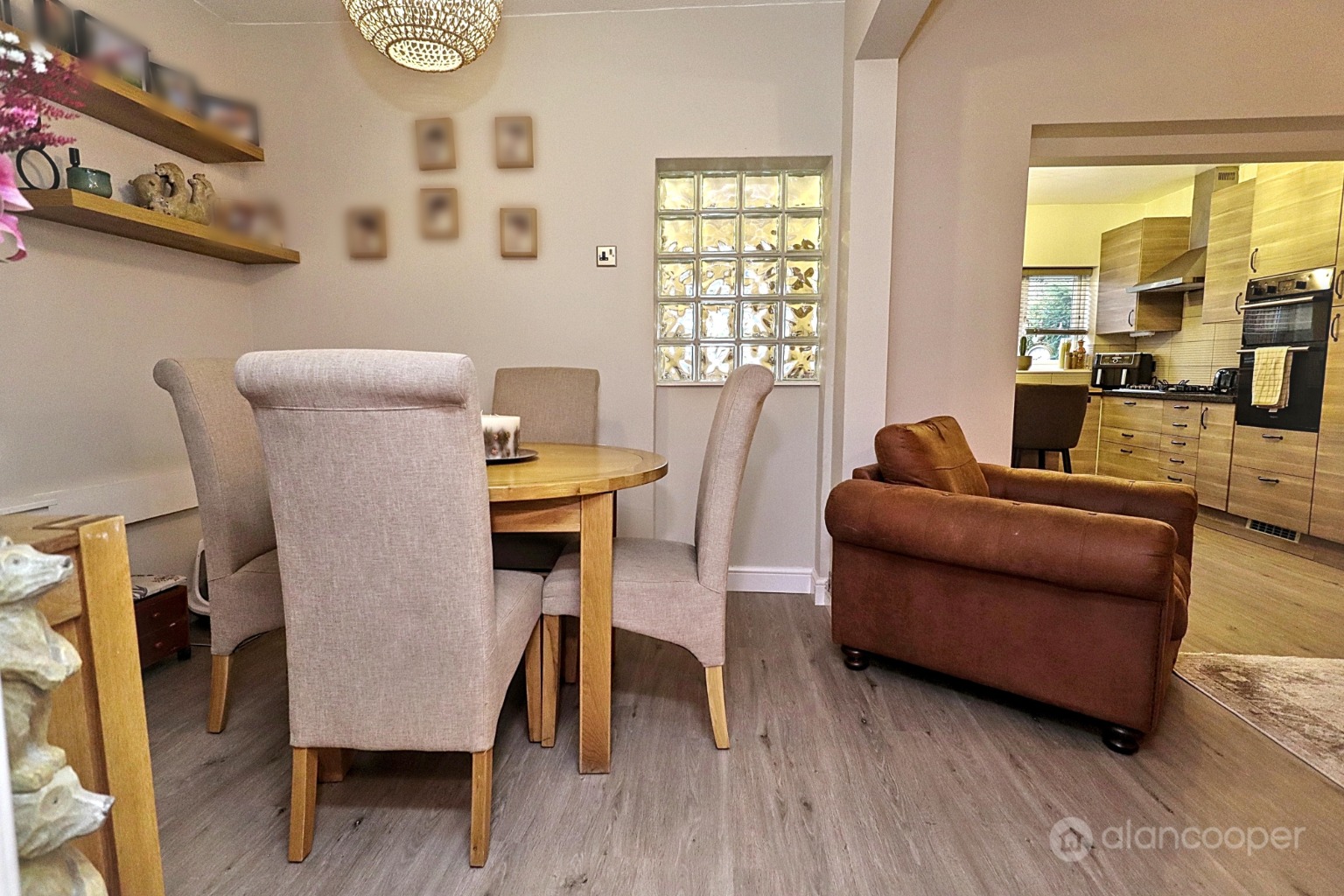 The separate dining room provides an excellent space for formal meals or family gatherings, complete with a radiator and a double glazed window. This room flows seamlessly into the inviting family room, which boasts a charming feature log burner, adding warmth and character, and a radiator. The family room, in turn, opens into the contemporary breakfast kitchen.