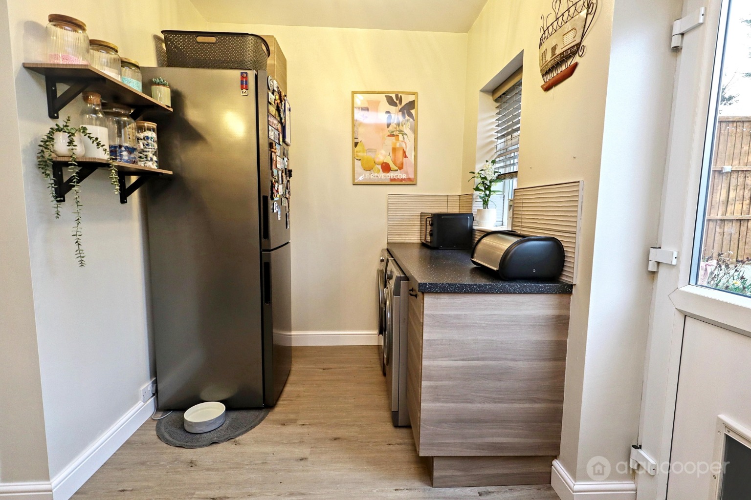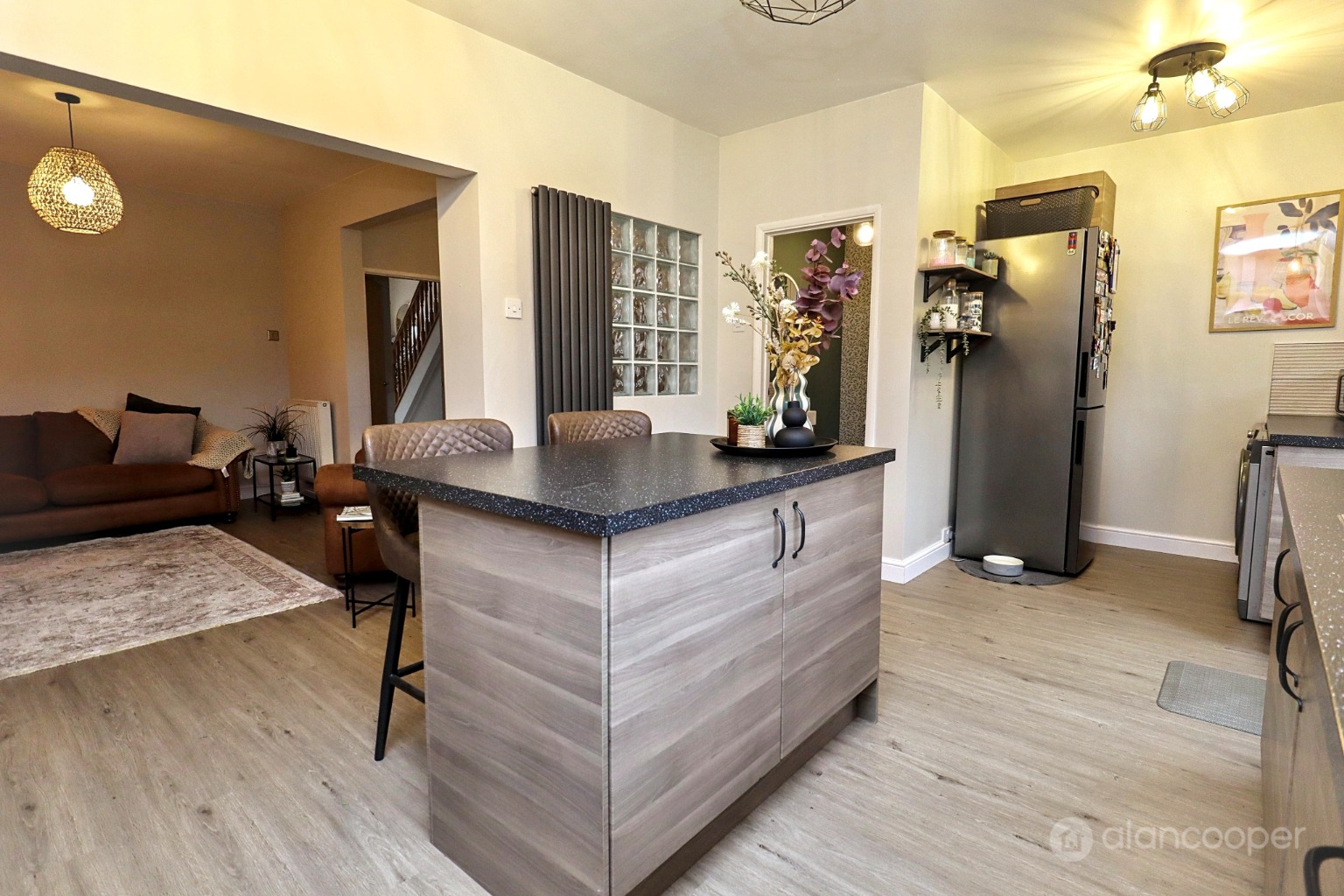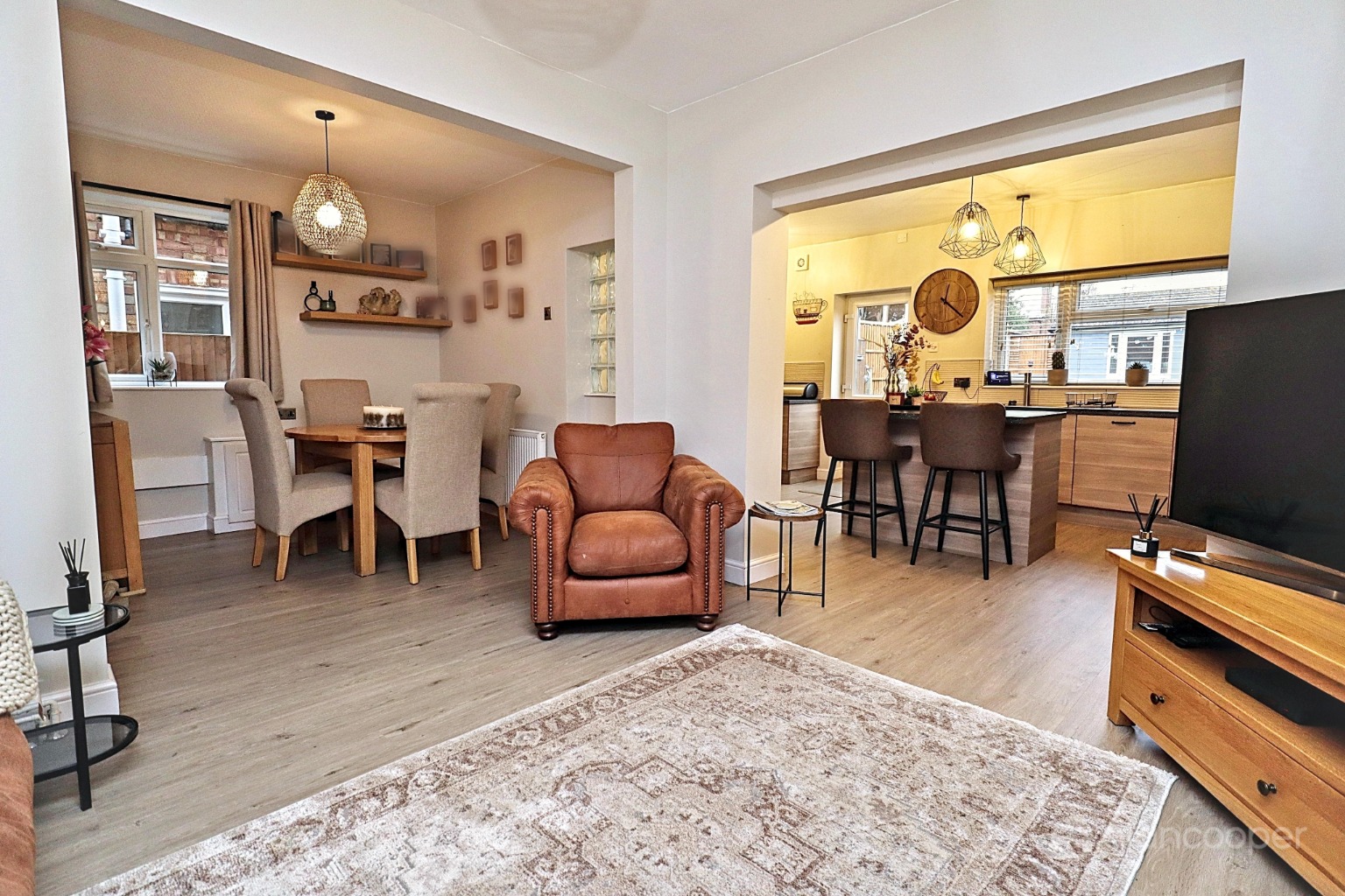 The separate dining room provides an excellent space for formal meals or family gatherings, complete with a radiator and a double glazed window. This room flows seamlessly into the inviting family room, which boasts a charming feature log burner, adding warmth and character, and a radiator. The family room, in turn, opens into the contemporary breakfast kitchen.