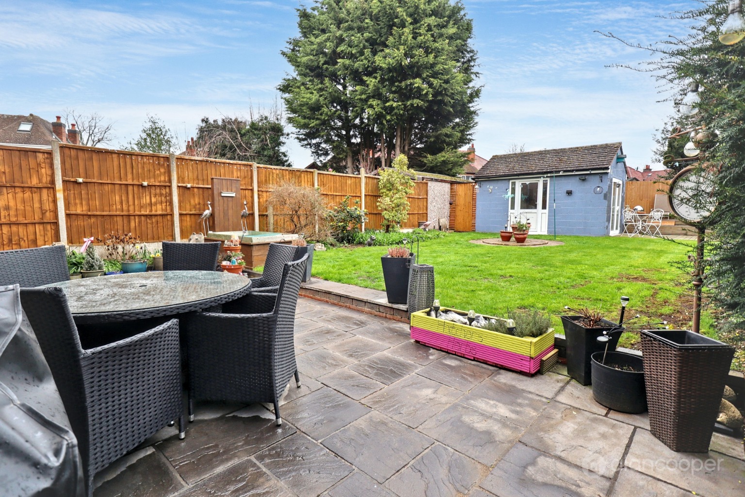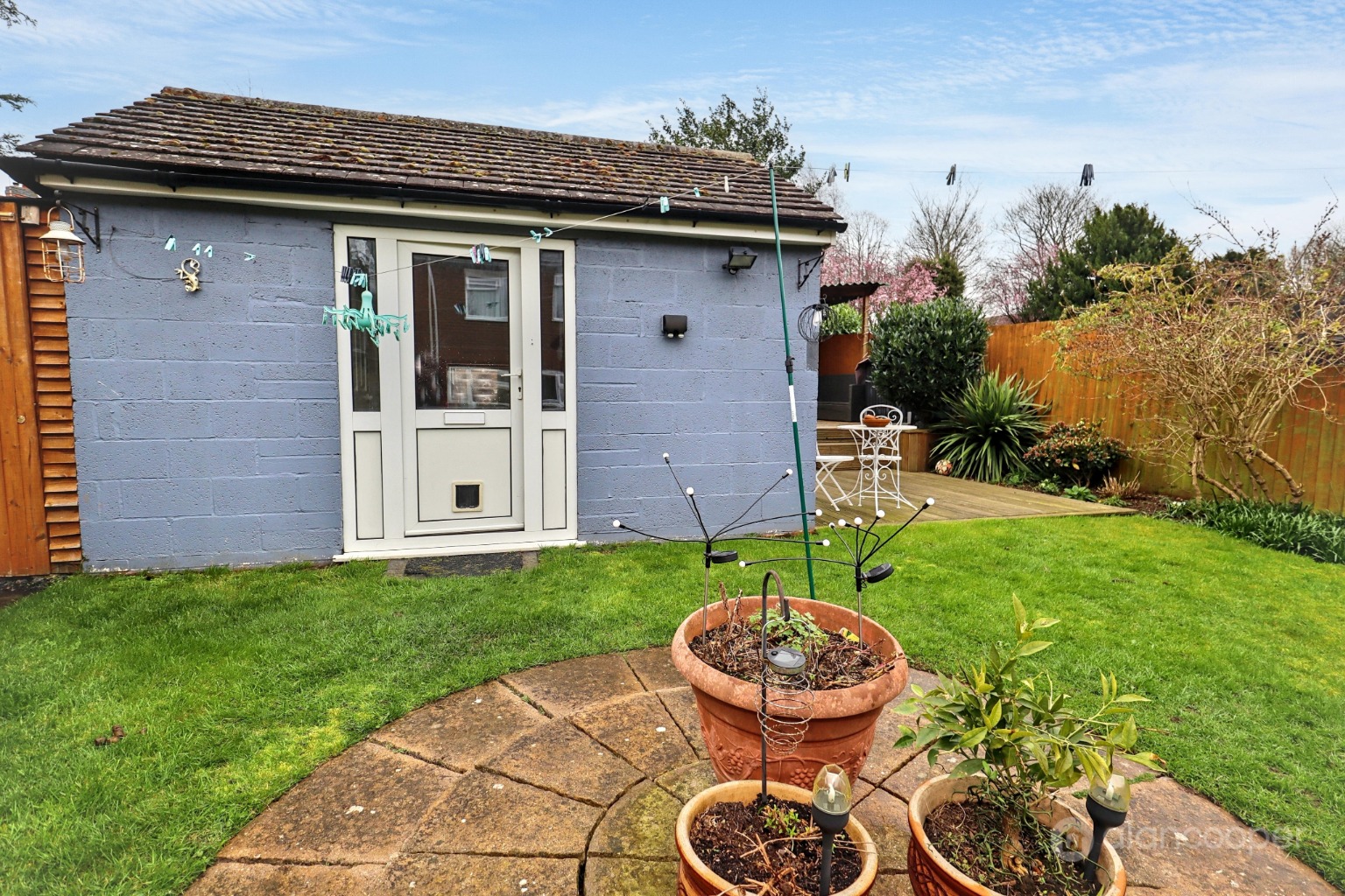 Externally, the property boasts a full-width block paved driveway to the front, providing ample off-road parking for multiple vehicles. The rear garden is a delightful outdoor space, featuring a paved patio area perfect for al fresco dining, a well-maintained lawn, and a decking area ideal for relaxation. An outbuilding offers additional storage/working solutions, and the garden is enclosed by fenced boundaries with a convenient side access gate.