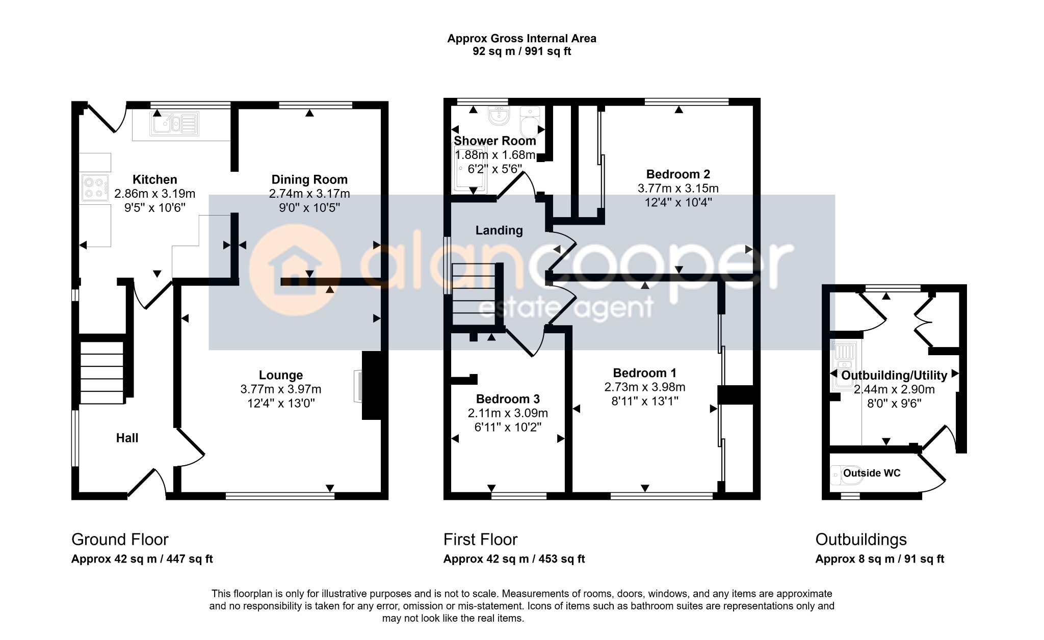 Agents NoteWe have not tested any of the electrical, central heating or sanitary ware appliances. Purchasers should make their own investigations as to the workings of the relevant items. Floor plans are for identification purposes only and not to scale. All room measurements and mileages quoted in these sales details are approximate. Subjective comments in these details imply the opinion of the selling Agent at the time these details were prepared. Naturally, the opinions of purchasers may differ. These sales details are produced in good faith to offer a guide only and do not constitute any part of a contract or offer. We would advise that fixtures and fittings included within the sale are confirmed by the purchaser at the point of offer. Images used within these details are under copyright to Alan Cooper Estates and under no circumstances are to be reproduced by a third party without prior permission.