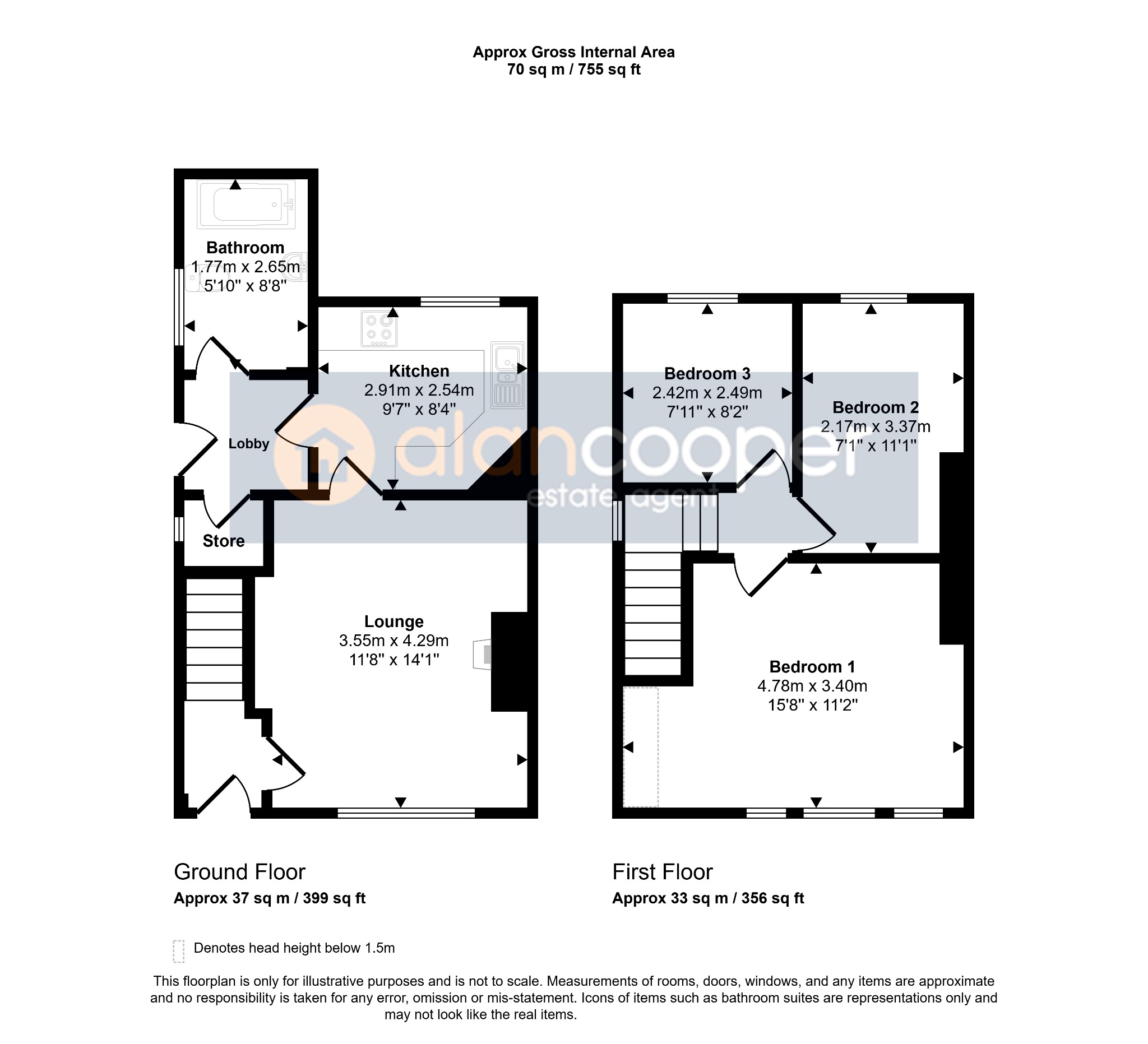 Agents NoteWe have not tested any of the electrical, central heating or sanitary ware appliances. Purchasers should make their own investigations as to the workings of the relevant items. Floor plans are for identification purposes only and not to scale. All room measurements and mileages quoted in these sales details are approximate. Subjective comments in these details imply the opinion of the Selling Agent at the time these details were prepared. Naturally, the opinions of purchasers may differ. These sales details are produced in good faith to offer a guide only and do not constitute any part of a contract or offer. We would advise that fixtures and fittings included within the sale are confirmed by the purchasers at the point of offer. Images used within these details are under copyright to Alan Cooper Estates and under no circumstances are to be reproduced by a third party without prior permission.