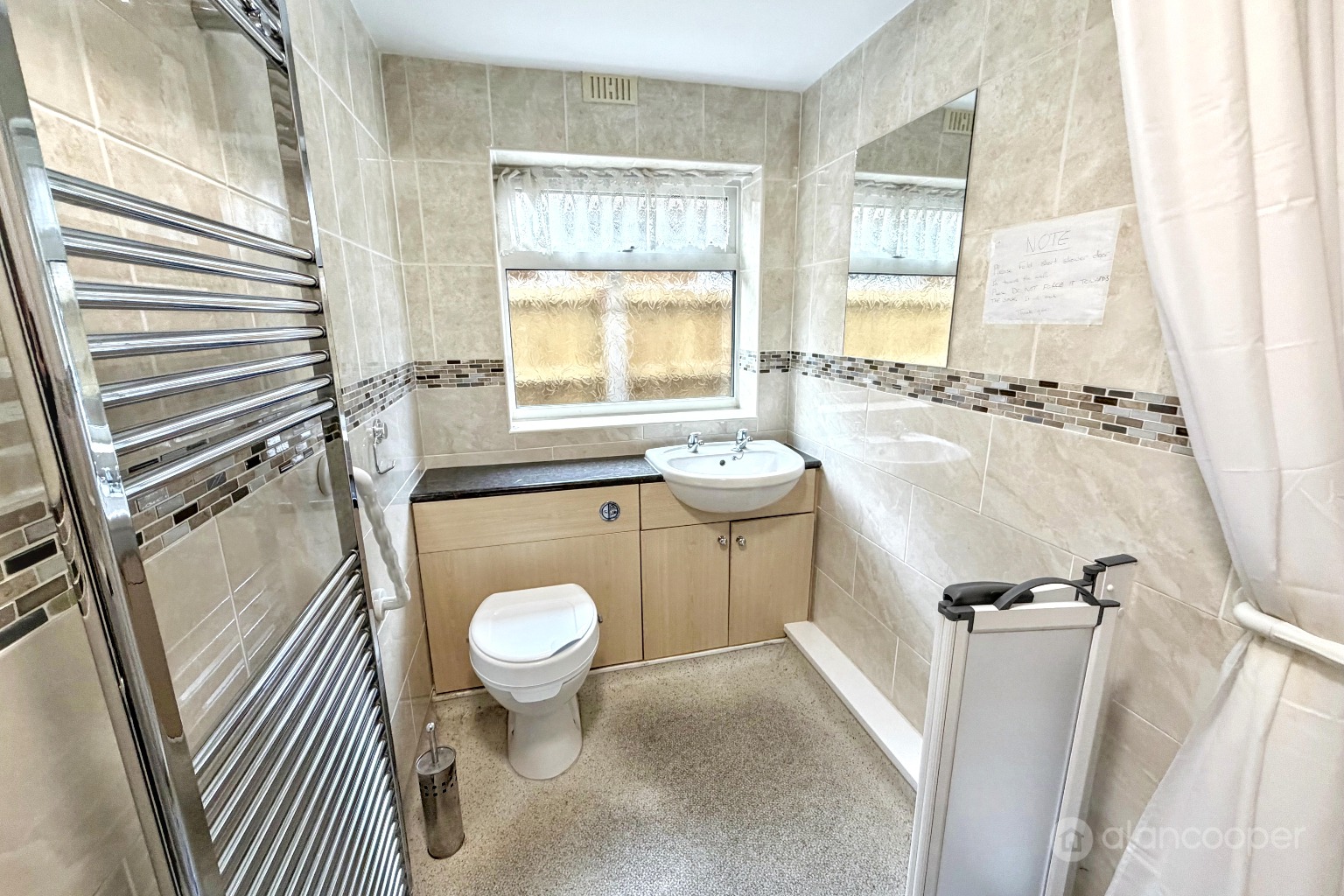 Family Shower Room8' 10" x 5' 0"Being fully tiled to the walls and having a white suite comprising a walk-in shower, wash hand basin with cupboard below and low-level WC. Heated towel rail and UPVC sealed unit double glazed window.