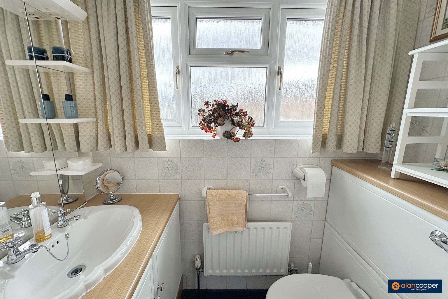 Guests CloakroomHaving a white suite comprising a wash hand basin with cupboard below and low level WC. Central heating radiator and UPVC sealed unit double glazed window.