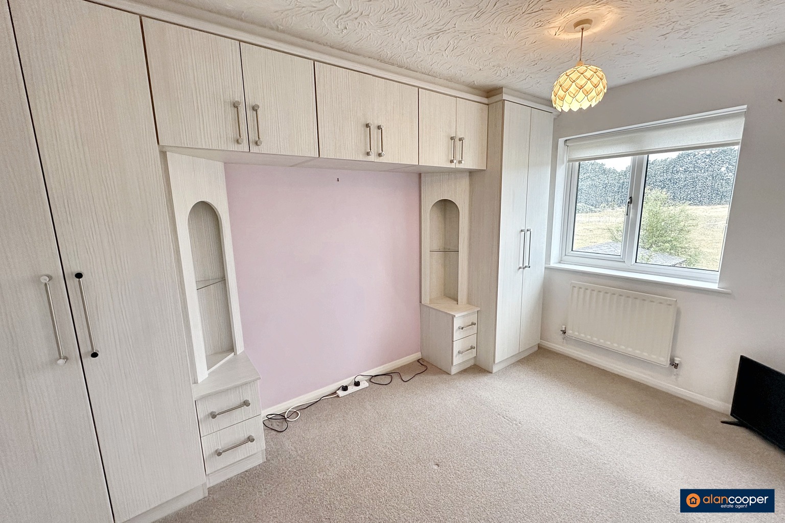 Bedroom 18' 4" x 12' 0"Having a range of fitted wardrobes with bridging cupboards and bedside drawers. Central heating radiator and UPVC sealed unit double glazed window.