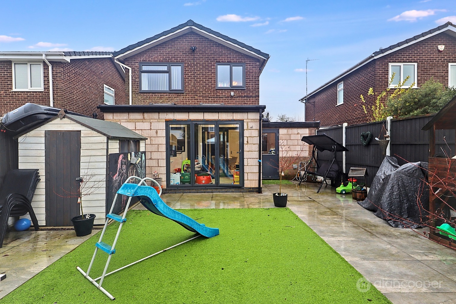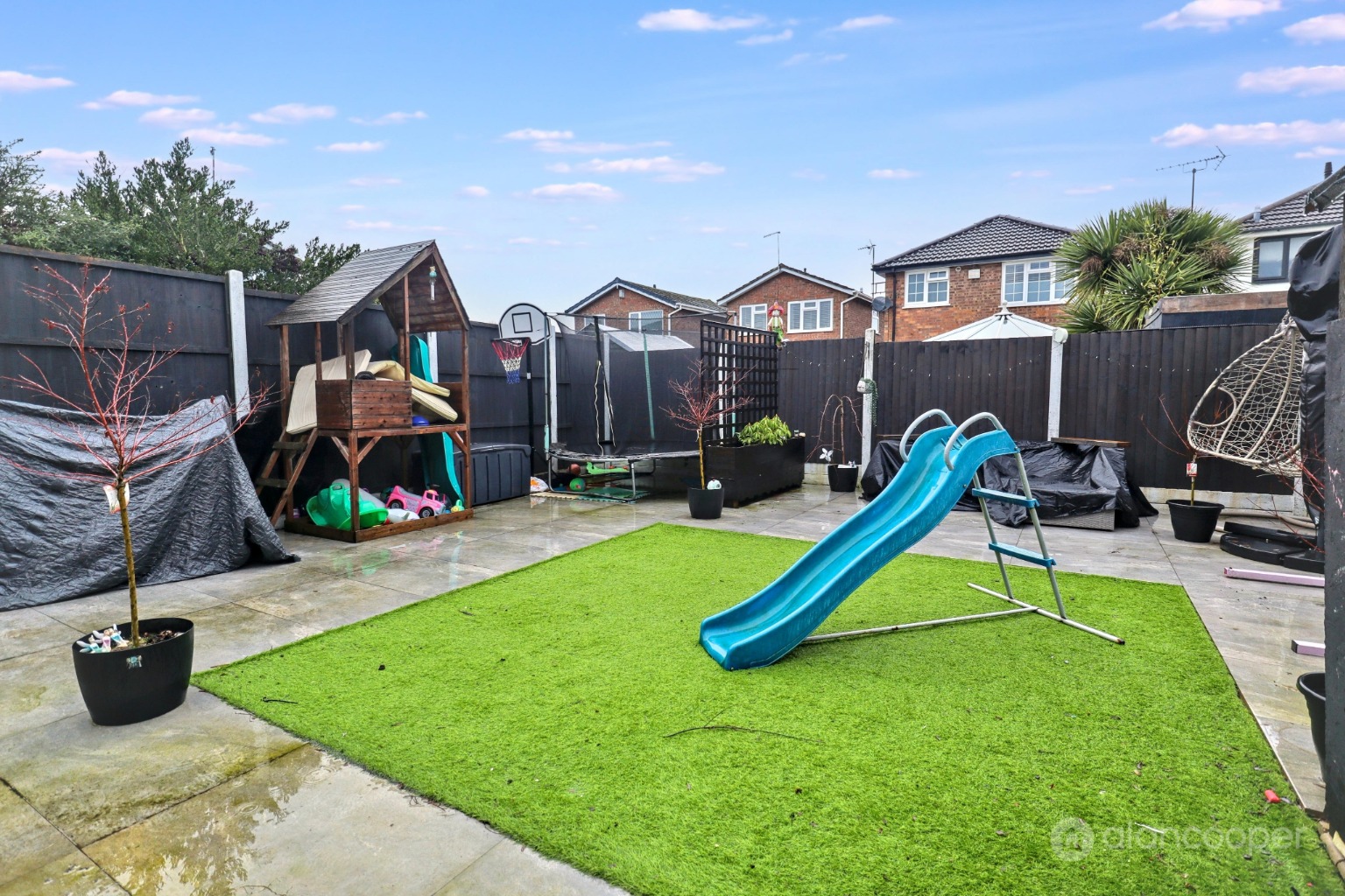 Externally, the property boasts a full-width driveway to the front, providing ample off-road parking and direct access to the integral garage. The rear garden is designed for low maintenance and enjoyment, featuring a paved patio area perfect for al fresco dining, an artificial lawn, and secure fenced boundaries.